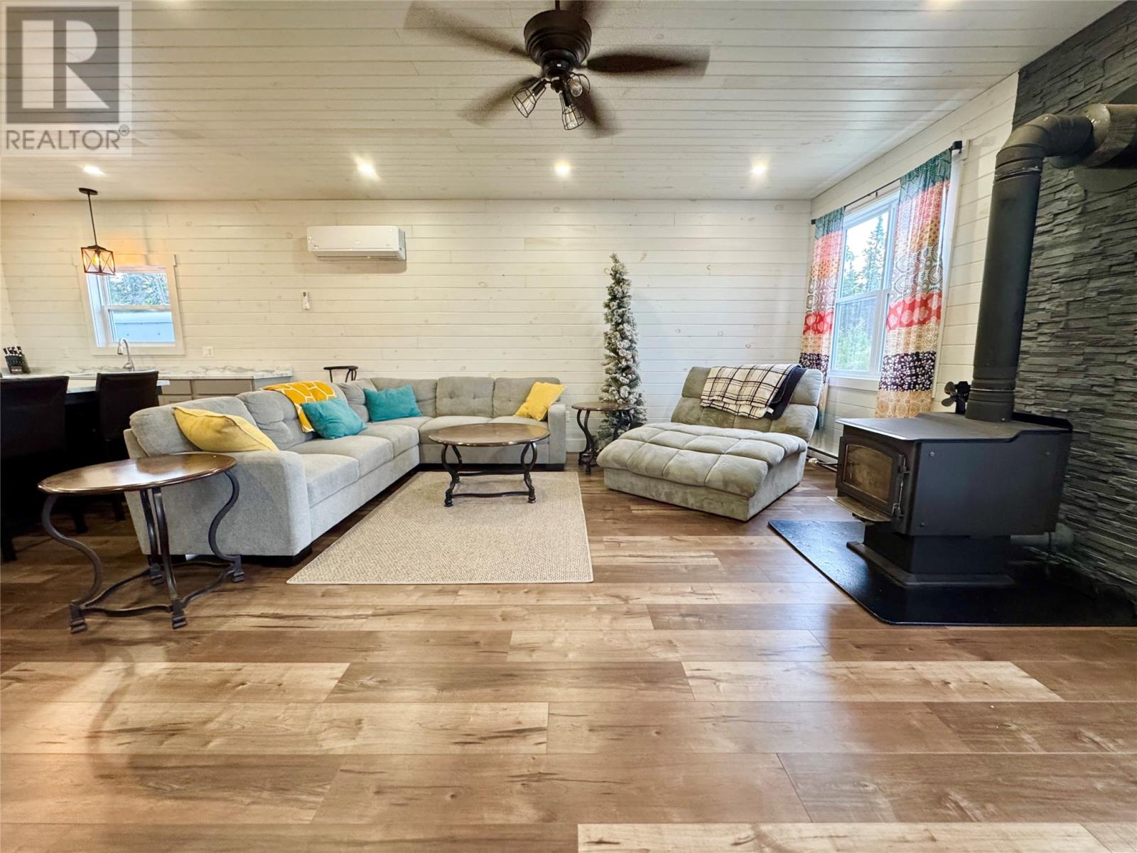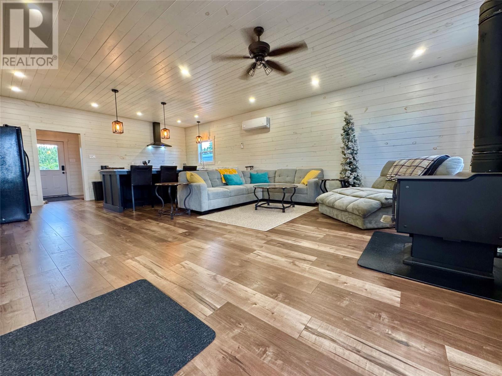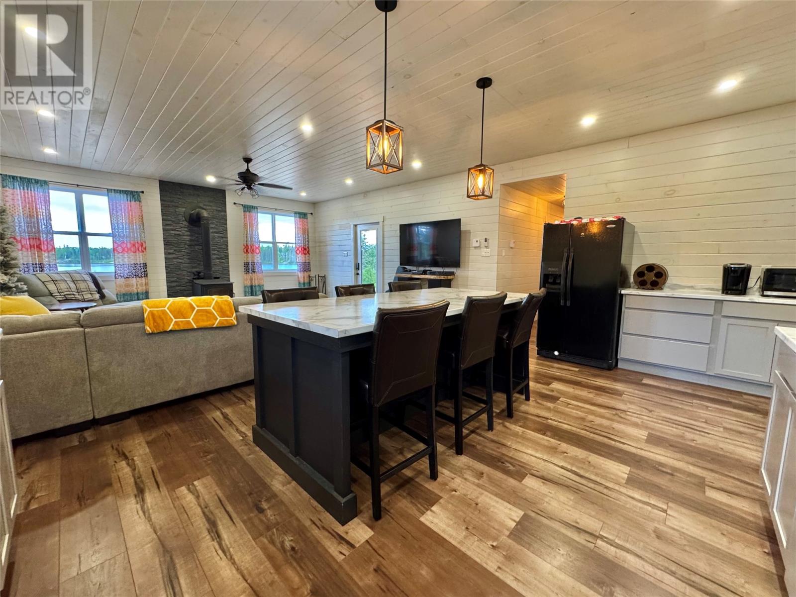 Charming New Waterfront Cabin on Pikes Pond – Your Perfect Escape Retreat! Boasting just under an acre of stunning waterfront property, this brand-new bungalow offers a rare opportunity to own a serene retreat on Pikes Pond, just outside of Gander. This spacious three-bedroom, one-bath home features a bright, open-concept design. The large kitchen is a chef’s dream, complete with a huge island, ample counter space, and plenty of cabinets—perfect for family gatherings and entertaining guests. Large windows throughout the home flood the space with natural light and showcase breathtaking views of the pond and surrounding nature. Stay cozy year-round with a wood stove, electric heat, and a modern heat pump—offering comfort and energy efficiency in all seasons. The interior is beautifully finished with ship lap walls, adding charm and warmth to this inviting home. Located on a pristine pond with a dug well, septic system and 200-amp service, this property is perfect for outdoor enthusiasts. Enjoy world-class fishing, incredible hunting, and miles of sea of berries right at your doorstep. The newly connected electricity ensures modern amenities are at your fingertips, all while maintaining the peaceful, off-grid lifestyle. Step outside onto the covered front deck—ideal for relaxing and taking in the view, rain or shine. This property truly has it all: a peaceful setting, ample outdoor activities, and a cozy home to call your own. Whether you’re seeking a peaceful getaway, a hunting and fishing haven, or a place to gather with friends and family, this property is sure to turn heads. It’s a perfect home away from home—ready to be your private retreat. Don’t miss out on this exceptional opportunity to own a waterfront paradise. Schedule your viewing today! (id:2887)