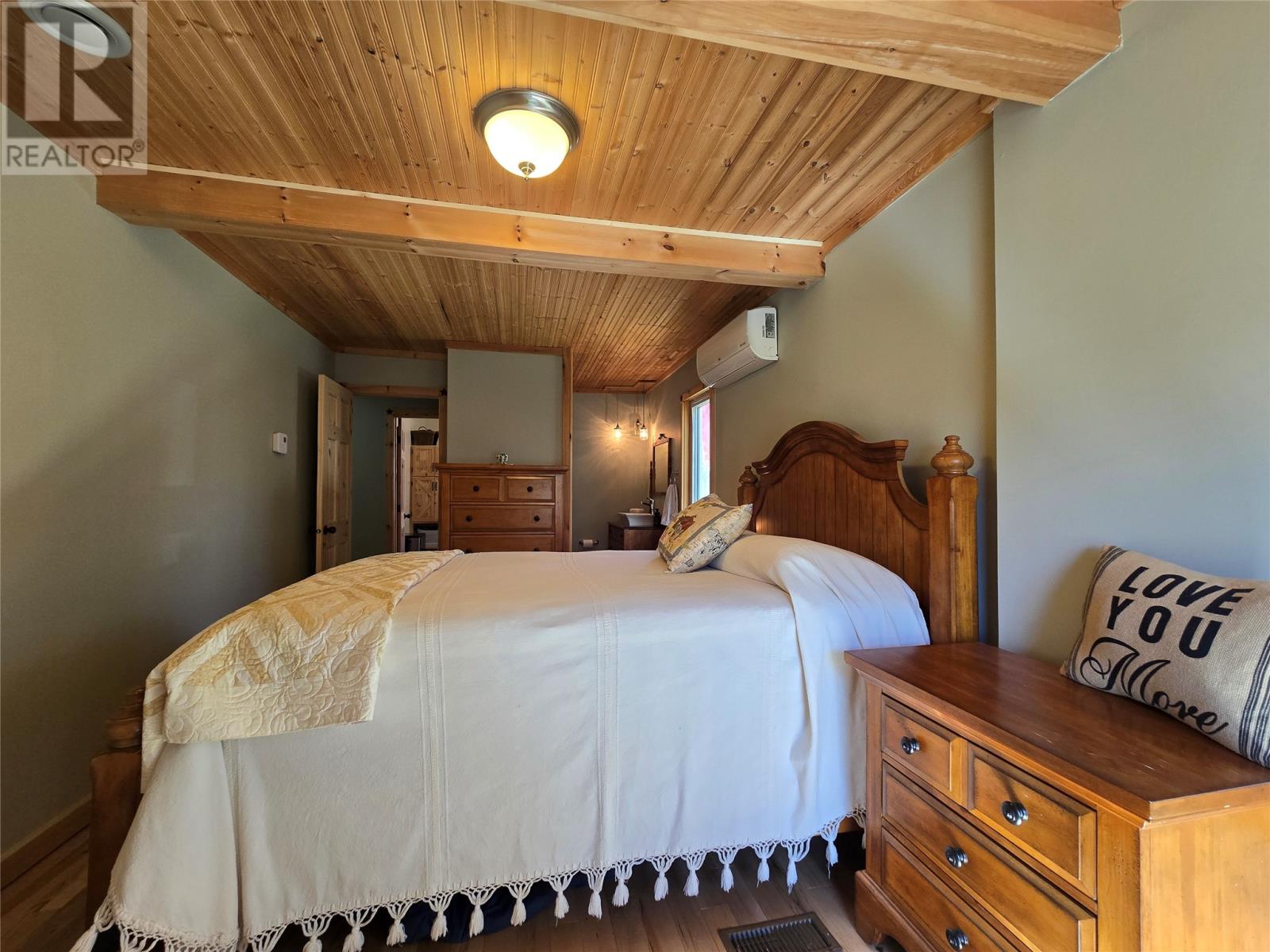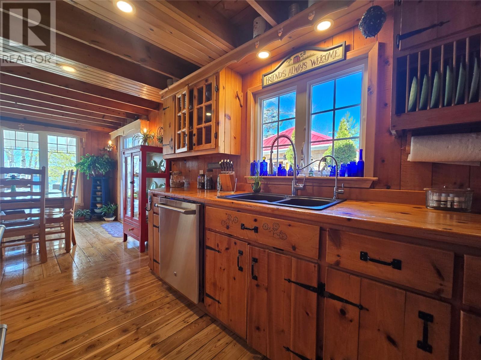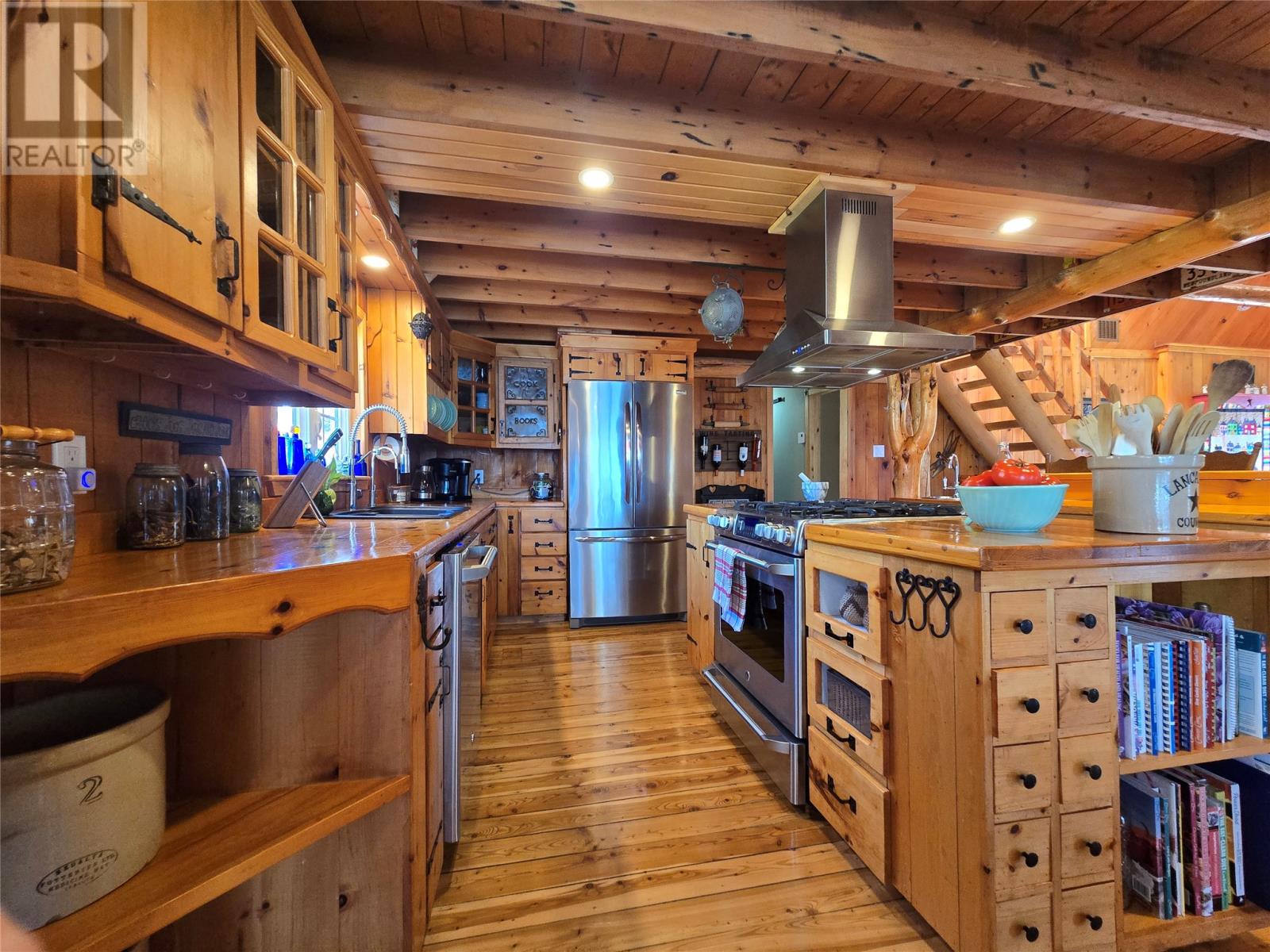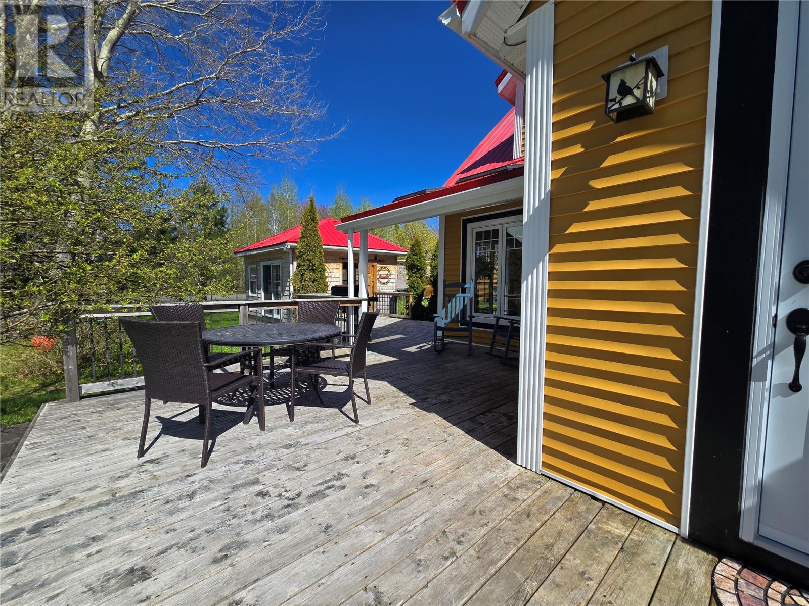 Live, work, play! This gorgeous cape cod home is nestled amongst the trees on the shore of the exploits river. The kitchen features a stainless gas range, double door refrigerator, dishwasher and true wood countertops. The kitchen is open to the family room where the wood stove shines as a centerpiece. There are so many windows in this home offering a staggering amount of natural light. This home features 2 large bedrooms on the main floor, with closets and the rear bedroom comes complete with an ensuite. Upstairs there is a large bedroom with 2 closets both boasting motion lighting. A finished bonus room upstairs offers storage space or a playroom for youngsters and is as bright as the rest of this home. The main floor bathroom features a 2 seat whirlpool tub and a stand up shower. There are heat pumps in each bedroom and in the family room offering both heating and air conditioning, electric baseboard heat and that glorious wood stove in the family room. You have choices. The home is approximately 35 years old, with modern day amenities. All plumbing has been converted to PEX in 2025, the electrical panel was updated and baseboard heat installed in 2023. Moving to outside you will find a hot tub wrapped in a 225 sf wood sided shed, complete with sliding glass doors so that you can look out and enjoy the river view. The property also has a 2400sf, 2 story garage that is insulated and has its own heat pump. The main level is currently used for car repair and woodworking, the upstairs has 3 spaces, one is currently being used as a large craft space and the other 2 spaces are being used for storage. The property has a tool shed, garden tractor shed, greenhouse and all buildings have steel roofs, 15 years old. This property is double wide, the 2nd piece of land features a Quonset offering 500sf of extra space. The river is accessible from both pieces of land for swimming, kayaking or paddle boarding and the rail trail is just minutes away! Live, work, play! (id:2887)