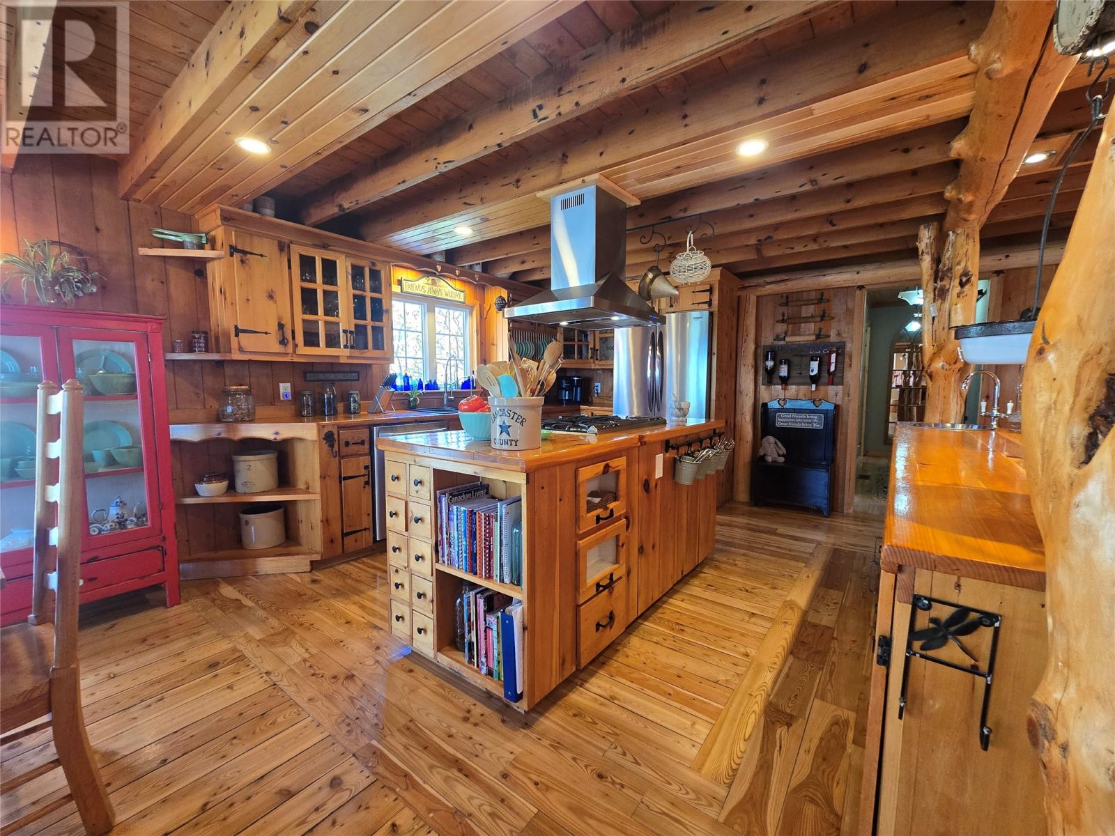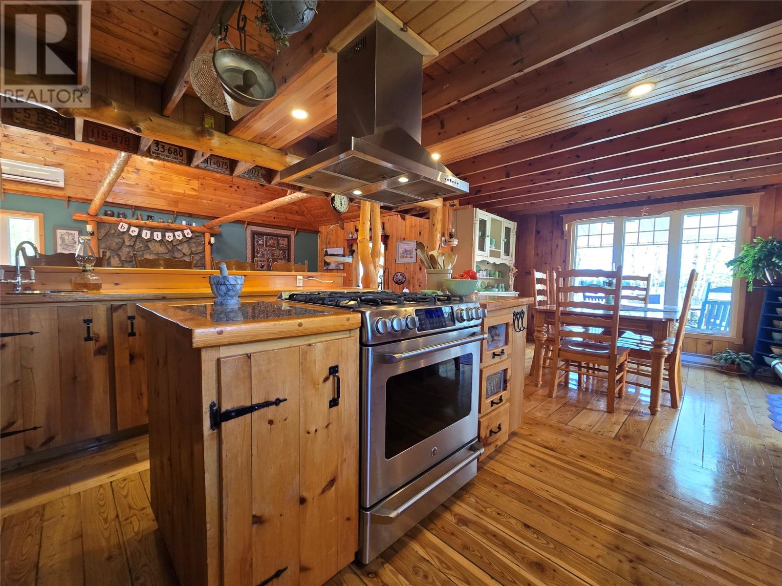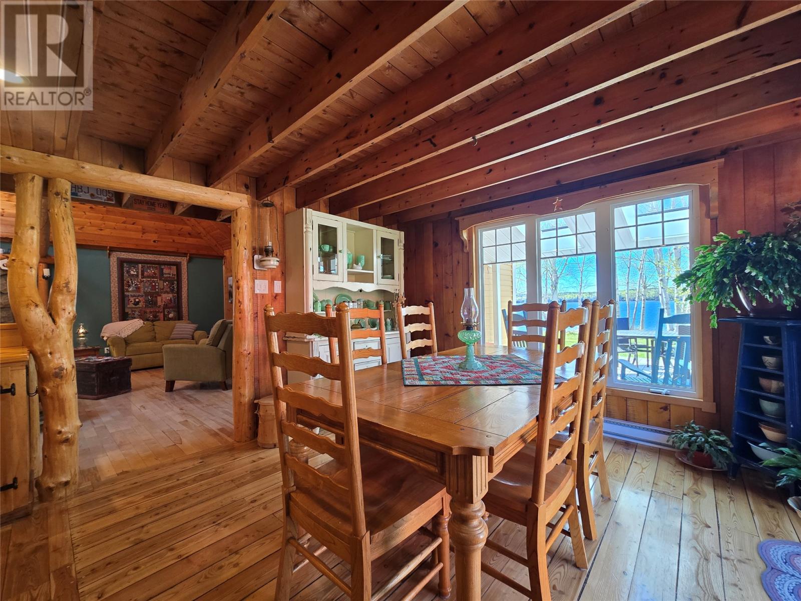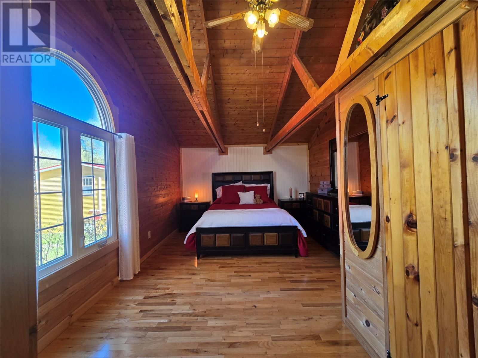 Live, work, play! This gorgeous cape cod home is nestled amongst the trees on the shore of the exploits river. The kitchen features a stainless gas range, double door refrigerator, dishwasher and true wood countertops. The kitchen is open to the family room where the wood stove shines as a centerpiece. There are so many windows in this home offering a staggering amount of natural light. This home features 2 large bedrooms on the main floor, with closets and the rear bedroom comes complete with an ensuite. Upstairs there is a large bedroom with 2 closets both boasting motion lighting. A finished bonus room upstairs offers storage space or a playroom for youngsters and is as bright as the rest of this home. The main floor bathroom features a 2 seat whirlpool tub and a stand up shower. There are heat pumps in each bedroom and in the family room offering both heating and air conditioning, electric baseboard heat and that glorious wood stove in the family room. You have choices. The home is approximately 35 years old, with modern day amenities. All plumbing has been converted to PEX in 2025, the electrical panel was updated and baseboard heat installed in 2023. Moving to outside you will find a hot tub wrapped in a 225 sf wood sided shed, complete with sliding glass doors so that you can look out and enjoy the river view. The property also has a 2400sf, 2 story garage that is insulated and has its own heat pump. The main level is currently used for car repair and woodworking, the upstairs has 3 spaces, one is currently being used as a large craft space and the other 2 spaces are being used for storage. The property has a tool shed, garden tractor shed, greenhouse and all buildings have steel roofs, 15 years old. This property is double wide, the 2nd piece of land features a Quonset offering 500sf of extra space. The river is accessible from both pieces of land for swimming, kayaking or paddle boarding and the rail trail is just minutes away! Live, work, play! (id:2887)