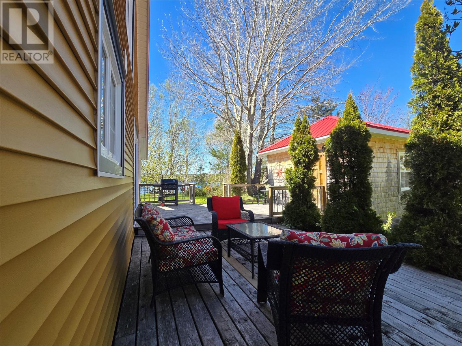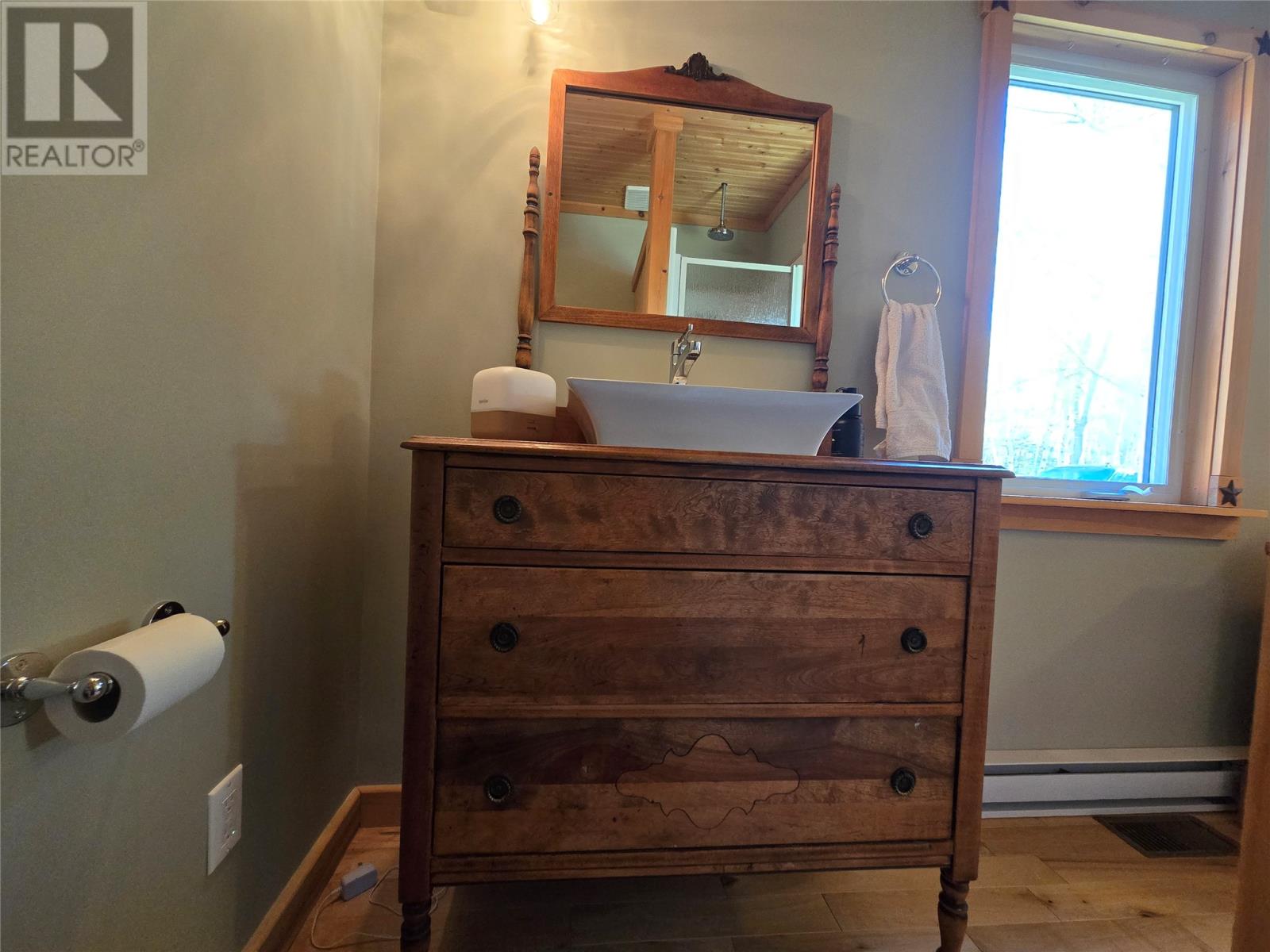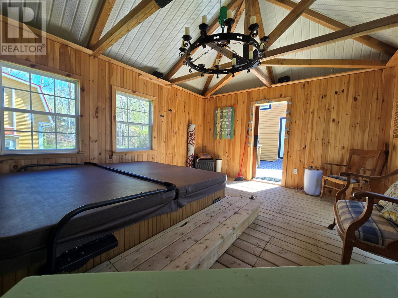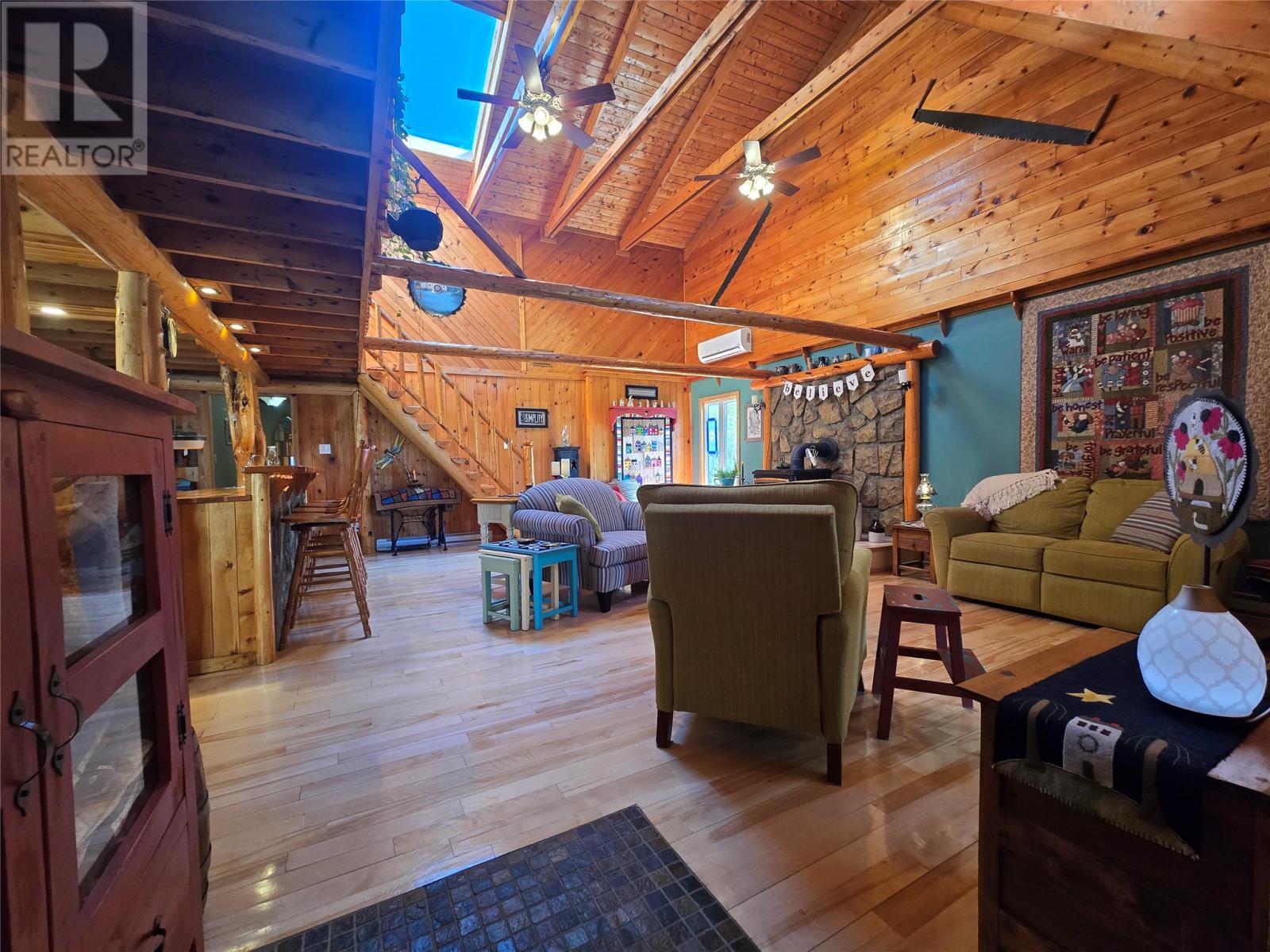 Live, work, play! This gorgeous cape cod home is nestled amongst the trees on the shore of the exploits river. The kitchen features a stainless gas range, double door refrigerator, dishwasher and true wood countertops. The kitchen is open to the family room where the wood stove shines as a centerpiece. There are so many windows in this home offering a staggering amount of natural light. This home features 2 large bedrooms on the main floor, with closets and the rear bedroom comes complete with an ensuite. Upstairs there is a large bedroom with 2 closets both boasting motion lighting. A finished bonus room upstairs offers storage space or a playroom for youngsters and is as bright as the rest of this home. The main floor bathroom features a 2 seat whirlpool tub and a stand up shower. There are heat pumps in each bedroom and in the family room offering both heating and air conditioning, electric baseboard heat and that glorious wood stove in the family room. You have choices. The home is approximately 35 years old, with modern day amenities. All plumbing has been converted to PEX in 2025, the electrical panel was updated and baseboard heat installed in 2023. Moving to outside you will find a hot tub wrapped in a 225 sf wood sided shed, complete with sliding glass doors so that you can look out and enjoy the river view. The property also has a 2400sf, 2 story garage that is insulated and has its own heat pump. The main level is currently used for car repair and woodworking, the upstairs has 3 spaces, one is currently being used as a large craft space and the other 2 spaces are being used for storage. The property has a tool shed, garden tractor shed, greenhouse and all buildings have steel roofs, 15 years old. This property is double wide, the 2nd piece of land features a Quonset offering 500sf of extra space. The river is accessible from both pieces of land for swimming, kayaking or paddle boarding and the rail trail is just minutes away! Live, work, play! (id:2887)