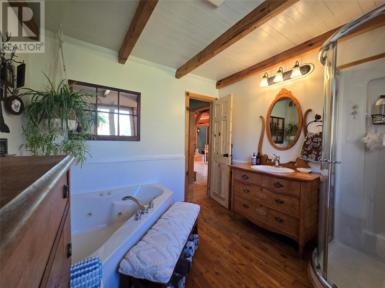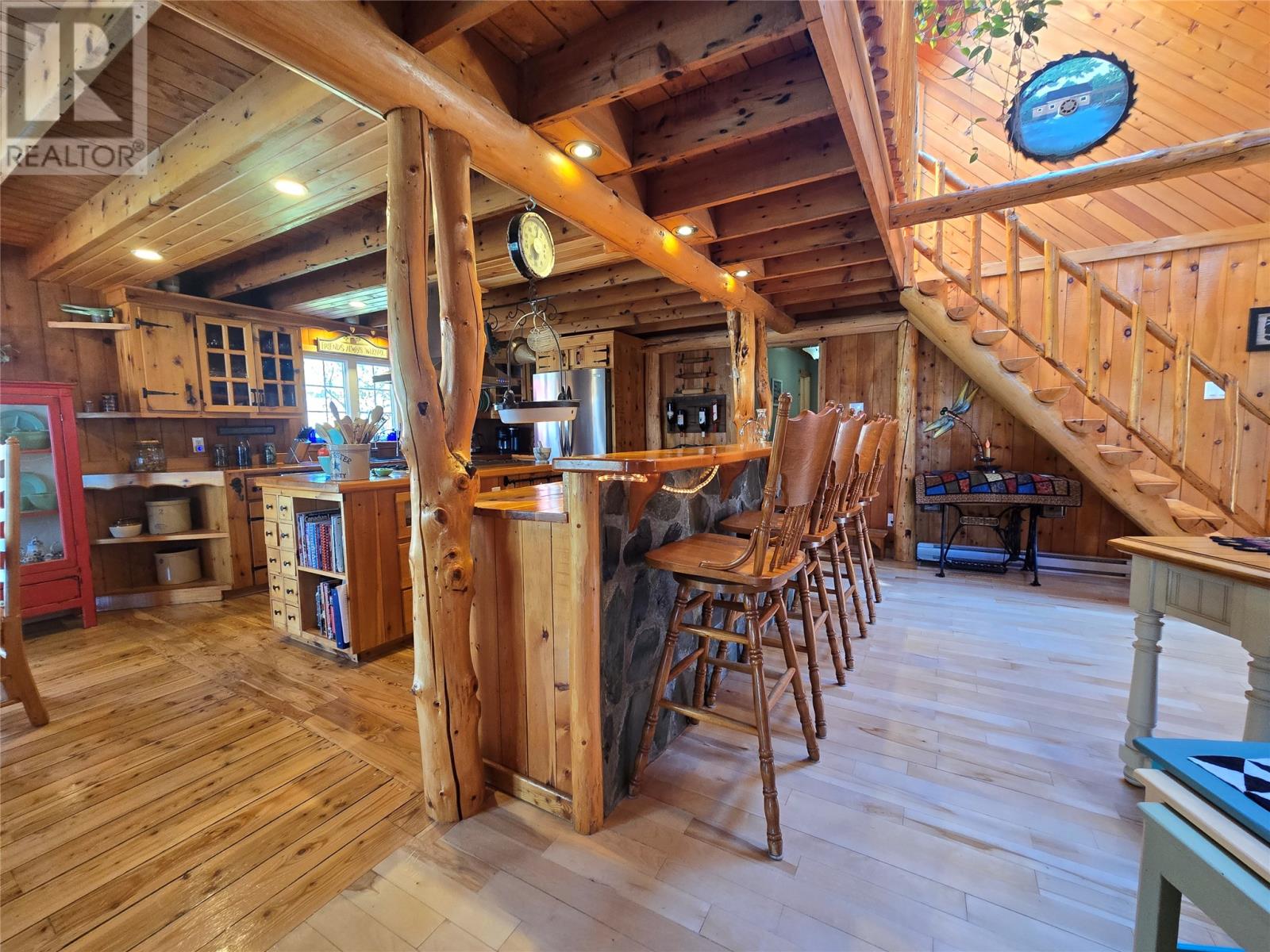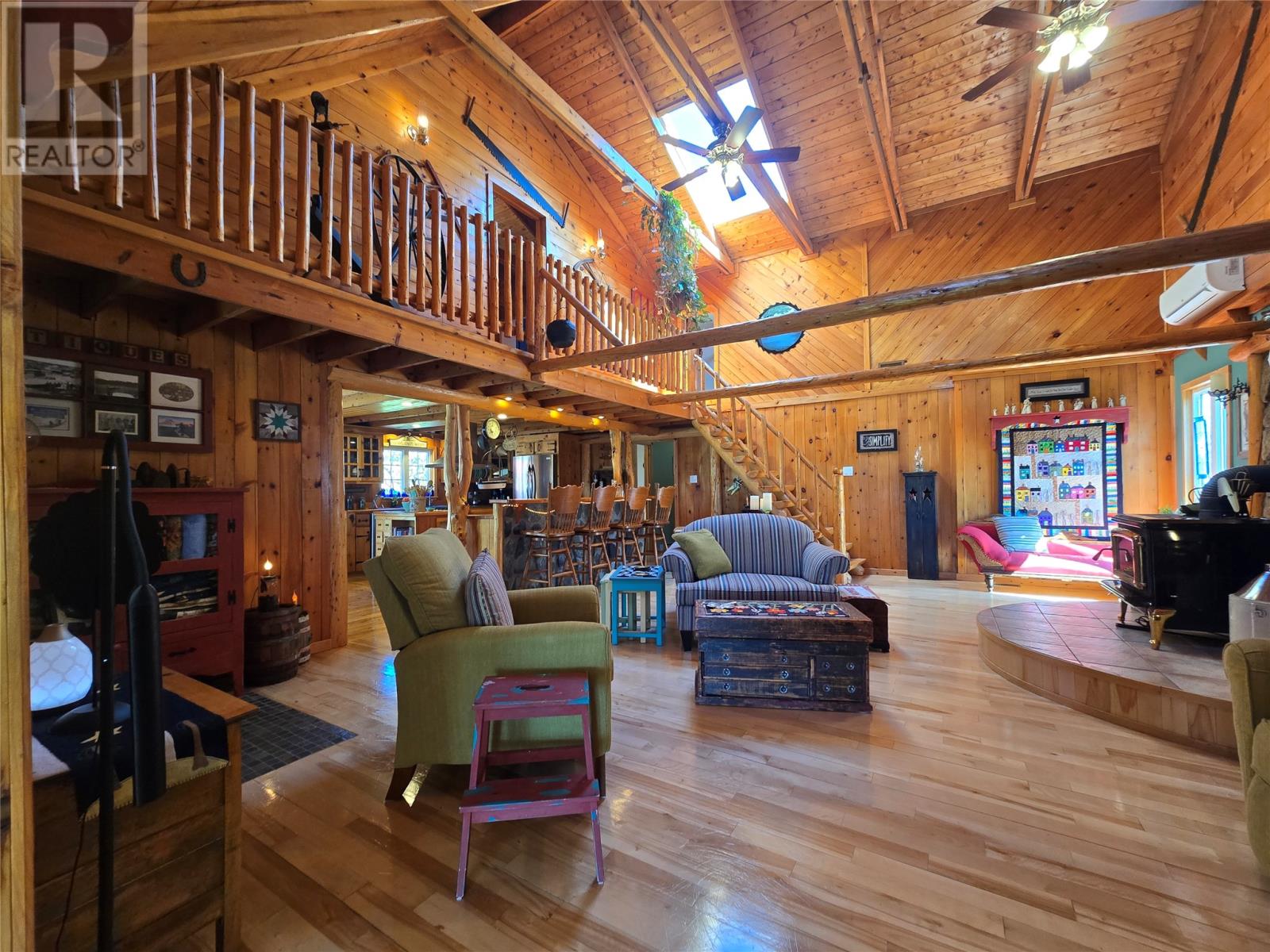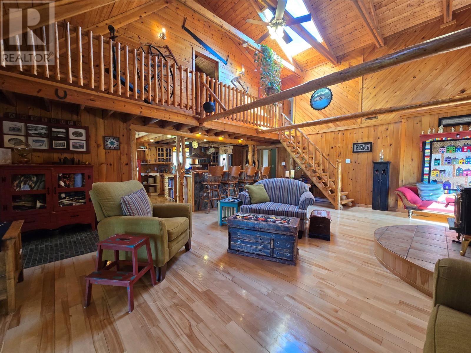 Live, work, play! This gorgeous cape cod home is nestled amongst the trees on the shore of the exploits river. The kitchen features a stainless gas range, double door refrigerator, dishwasher and true wood countertops. The kitchen is open to the family room where the wood stove shines as a centerpiece. There are so many windows in this home offering a staggering amount of natural light. This home features 2 large bedrooms on the main floor, with closets and the rear bedroom comes complete with an ensuite. Upstairs there is a large bedroom with 2 closets both boasting motion lighting. A finished bonus room upstairs offers storage space or a playroom for youngsters and is as bright as the rest of this home. The main floor bathroom features a 2 seat whirlpool tub and a stand up shower. There are heat pumps in each bedroom and in the family room offering both heating and air conditioning, electric baseboard heat and that glorious wood stove in the family room. You have choices. The home is approximately 35 years old, with modern day amenities. All plumbing has been converted to PEX in 2025, the electrical panel was updated and baseboard heat installed in 2023. Moving to outside you will find a hot tub wrapped in a 225 sf wood sided shed, complete with sliding glass doors so that you can look out and enjoy the river view. The property also has a 2400sf, 2 story garage that is insulated and has its own heat pump. The main level is currently used for car repair and woodworking, the upstairs has 3 spaces, one is currently being used as a large craft space and the other 2 spaces are being used for storage. The property has a tool shed, garden tractor shed, greenhouse and all buildings have steel roofs, 15 years old. This property is double wide, the 2nd piece of land features a Quonset offering 500sf of extra space. The river is accessible from both pieces of land for swimming, kayaking or paddle boarding and the rail trail is just minutes away! Live, work, play! (id:2887)