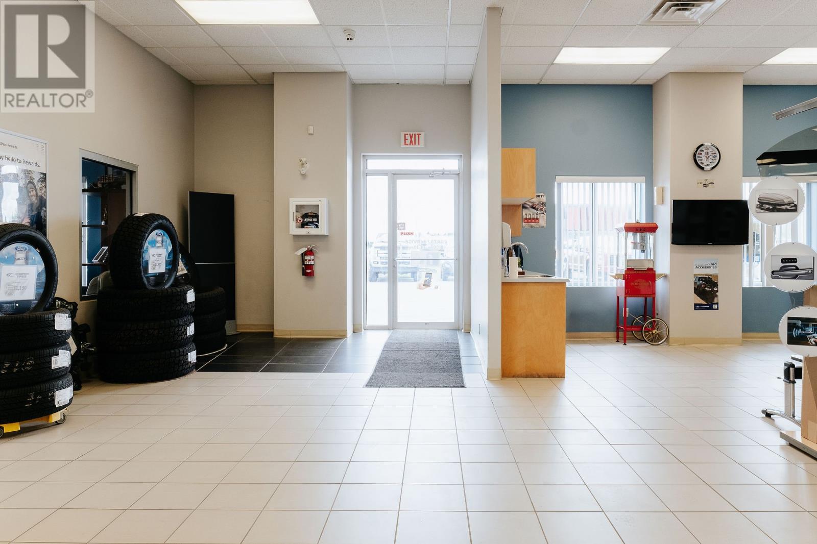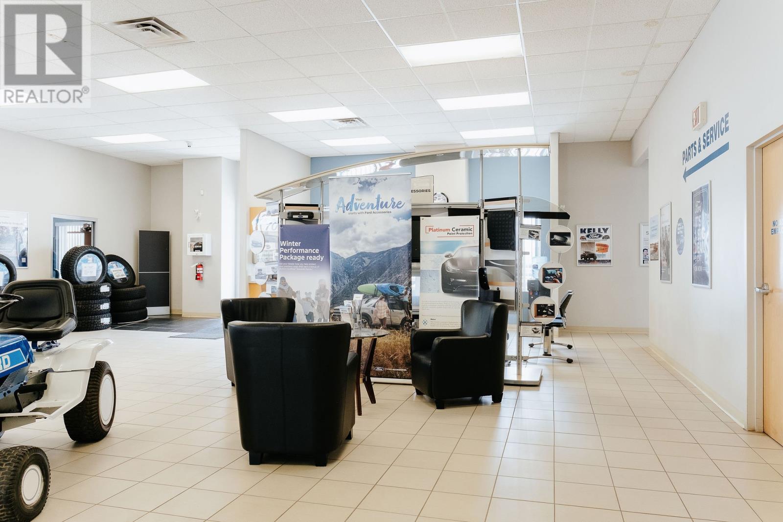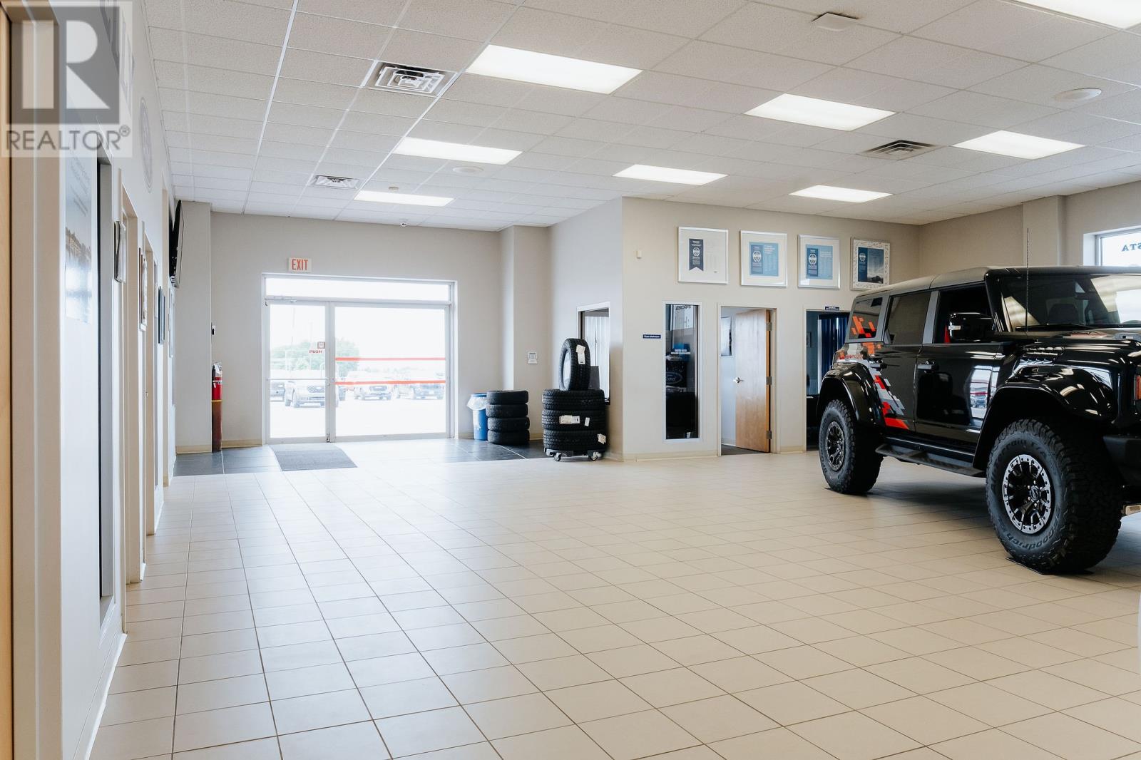 Welcome to 105 Laurel Road in Gander! This prime piece of commercial real estate is the ideal spot for a dealership, marine shop, or outdoor showroom. With visibility from Laurel Road, Cooper Boulevard and Airport Boulevard, you’ll be visible from three busy directions, and with just over three acres of land and a 15,000 sq. ft. building, you’ll have all the room you need. Built in 2008, this single-storey prefabricated steel-framed building combines practical design with a functional layout. Designed with business in mind, this building offers four sales offices in the showroom, plus two private managerial-style offices, and a bright, spacious waiting area to keep customers comfortable. Beyond the showroom, endless space for your administrative team, as well as a board room for training, and a staff kitchen. In the back, the fully equipped service garage is built to handle serious volume and keep operations running smoothly. With ten vehicle lifts, four oversized bay doors for easy access, a dedicated computer station for diagnostics, and a large parts room with additional storage upstairs, everything you need to run a high-performing service department is already in place. Built on a poured concrete foundation with slab on grade, the property features 600-amp service, an oil-fired hot air furnace system, and electric baseboard heat in reception, office, and washroom areas. With dual commercial zoning, this space offers the flexibility to bring just about any vision to life. (id:2887)