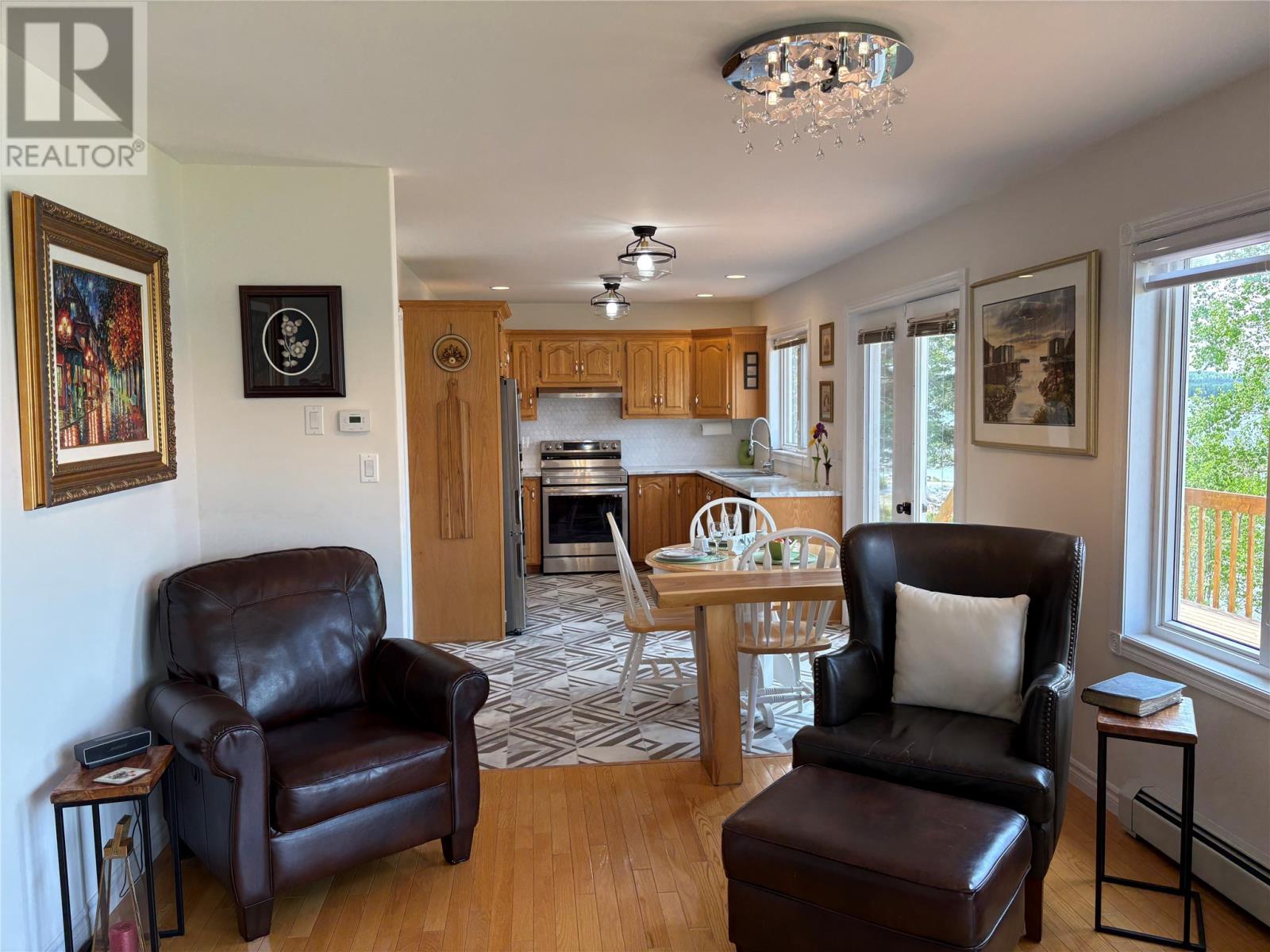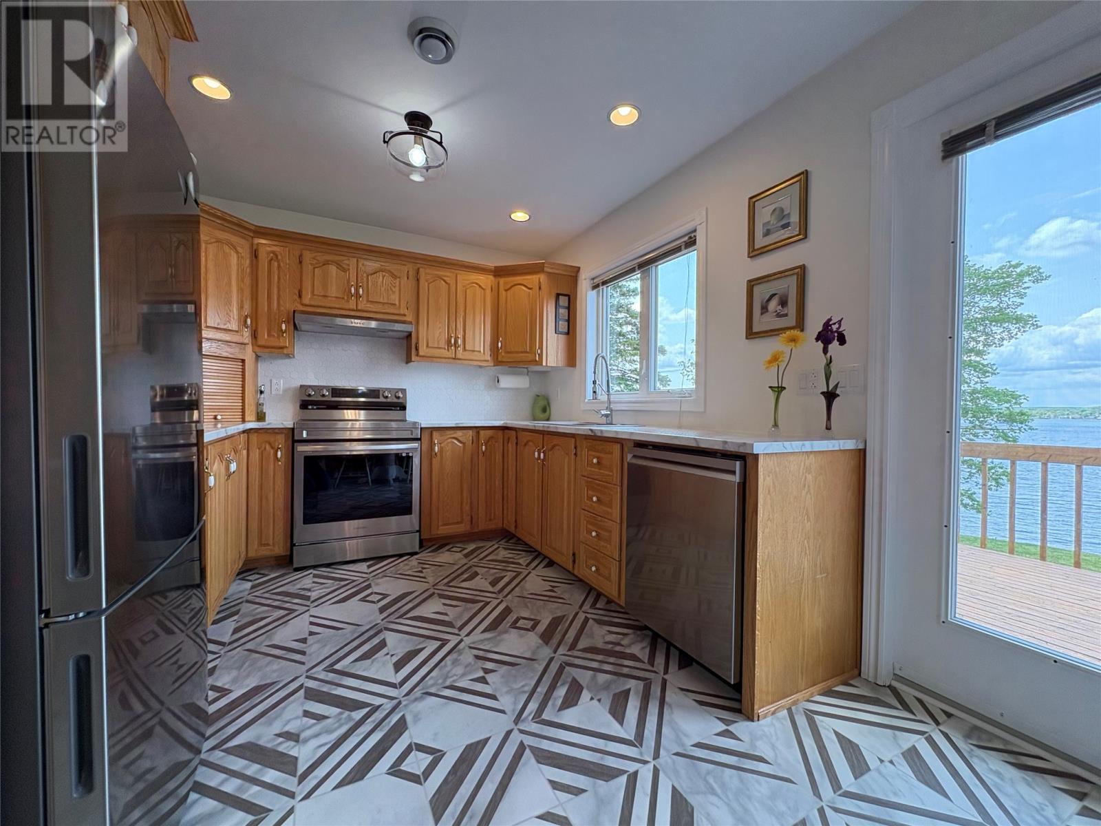 Welcome to your waterfront sanctuary and forever home at 117 Road to the Isles. This beautiful 1730 SFT bungalow is situated on the waters edge with panoramic views from all angles. This home features 2 bedrooms and 3 full baths. The open concept kitchen/dining/living room area is ideal for entertaining, with access to the large back deck to enjoy those stunning sunsets (southern exposure). The kitchen has a gorgeous backsplash and countertop with all stainless-steel appliances. The spacious master bedroom has a large walk-in closet and a 3-piece ensuite. Also, on the main is a second bedroom, another 3-piece bath, and laundry room that leads to the double bay, 20×20 garage with new automatic door openers. Downstairs there is a very large den that would make a great home gym, family room, or maybe even convert one section into a third bedroom. There’s a 3-piece bathroom downstairs as well. Just off the den is the utility area with a cozy wood stove, air exchanger, and a very high-end water filtration system. Outside the grounds have been meticulously manicured and maintained with flower beds, shrubs and mature trees. There’s a convenient 14×16 garden shed that has an adorable 8×20 “shed galley” for cook ups and gatherings and a firepit just outside. This home is heated electric hot water radiation, heat pump and wood stove. Alarm System. Recent upgrades include new 200AMP service with sub panel for generator(2021) Electric boiler for hot water radiation system(2024) Hot water tank(2024) Heat Pump (2024)Air exchanger(2024) New Kitchen appliances, back splash and countertop(2024) Water Filtration System(2023) New Wood Stove (2024)House shingles replaced(2019)Shed shingles replaced(2024)All pex plumbing(2020)This is a rare and immaculate oceanfront property and if you’re a kayaker or boating enthusiast, there’s an option for a dock of your very own or leave your boat at the nearby Lewisporte Marina. Contact an agent today….your DREAM HOME awaits and it’s move in ready! (id:2887)