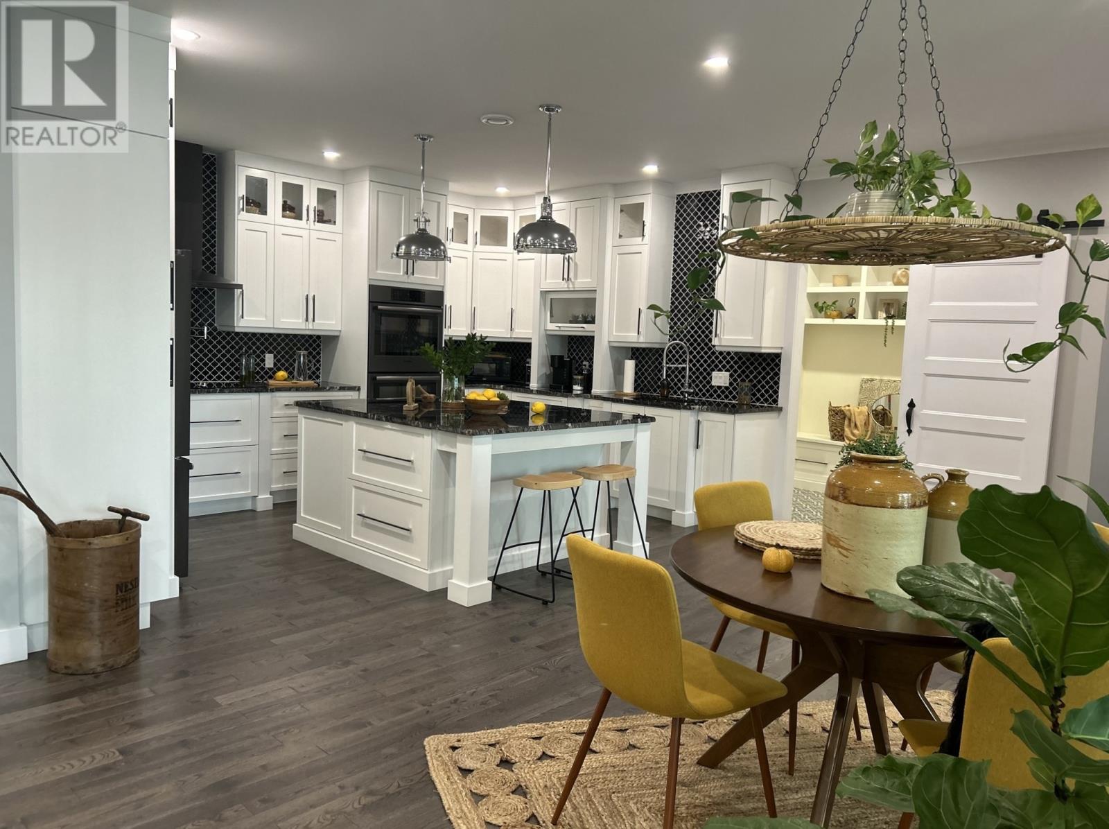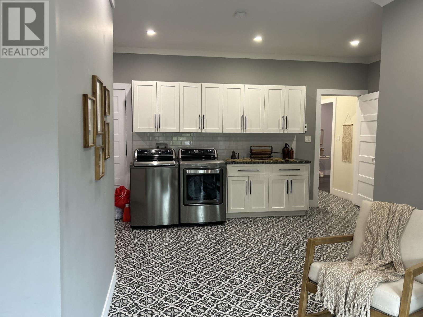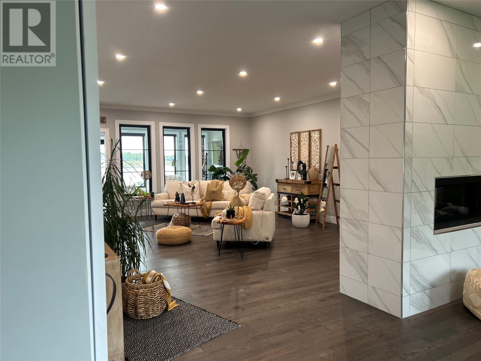 Discover a truly exceptional executive waterfront residence in the tranquil seaside community of Noggin Cove—just 45 minutes from Gander. 14 Main Street is more than a home—it’s a lifestyle. Thoughtfully designed with elegance and comfort, this one-of-a-kind coastal retreat blends architectural style with high-end finishes throughout. Enter through the grand foyer into a welcoming den and formal living room. The heart of the home features an open-concept kitchen and great room, centered around a stunning see-through propane fireplace—ideal for cozy evenings or upscale entertaining. Off the kitchen, a sunroom offers breathtaking ocean views—perfect for morning coffee or sunset relaxation. The luxurious primary suite includes a spa-like ensuite with a statement soaker tub, floating vanity, walk-in tiled shower, and large walk-in closet. Two more bedrooms, including a private guest suite with ensuite, provide space and comfort for family or visitors. Every detail shines: 9-ft ceilings, crown moulding, sliding barn doors, custom white cabinetry, live-edge and granite countertops, and chic lighting. The stylish mudroom features Turkish ceramic tile, laundry, half bath, seating nook, and access to a beautiful solarium. Outside, the curb appeal is second to none—a striking exterior enhanced this summer with vibrant flowers that add natural charm and colour to the grounds. Stamped concrete walkways, panoramic ocean views, and two detached garages (24×36 and 16×24) complete the picture. Serviced by a drilled well, septic system, 400-amp power, and full generator backup. Modern luxury meets peaceful oceanfront living. Showings available by appointment. (id:2887)
