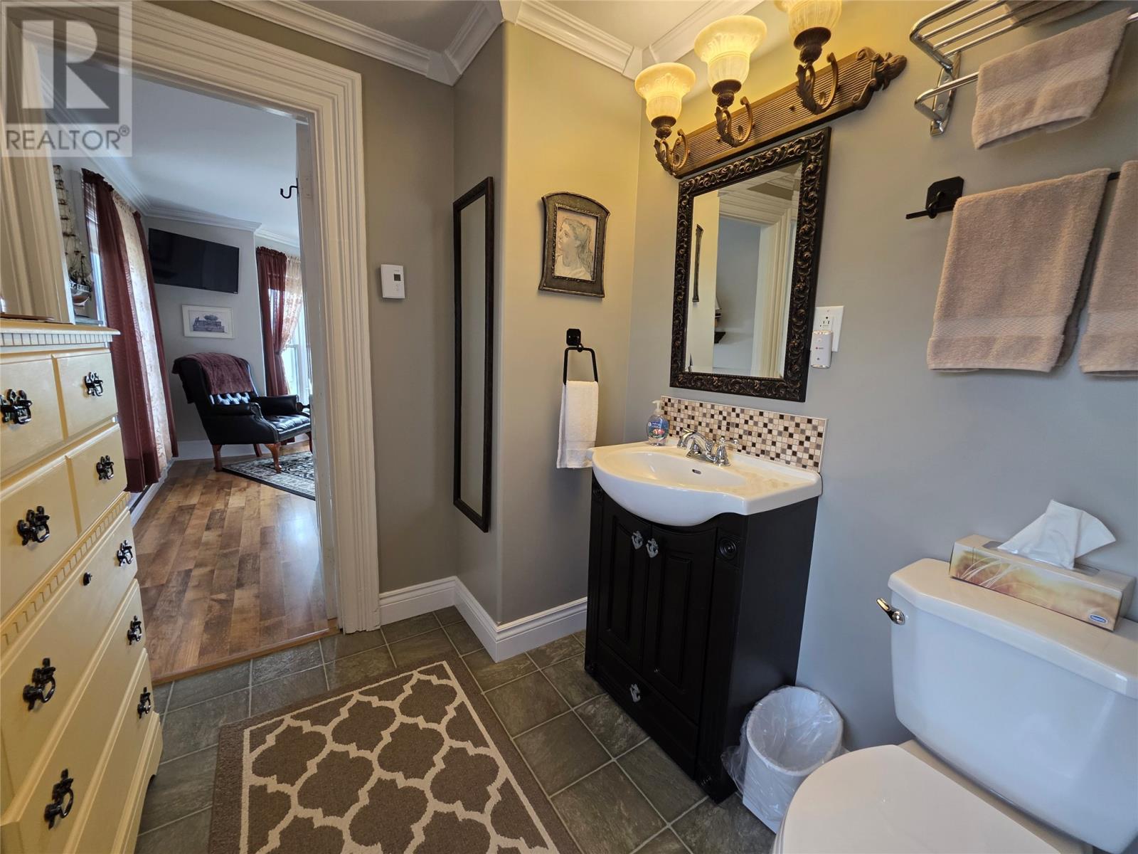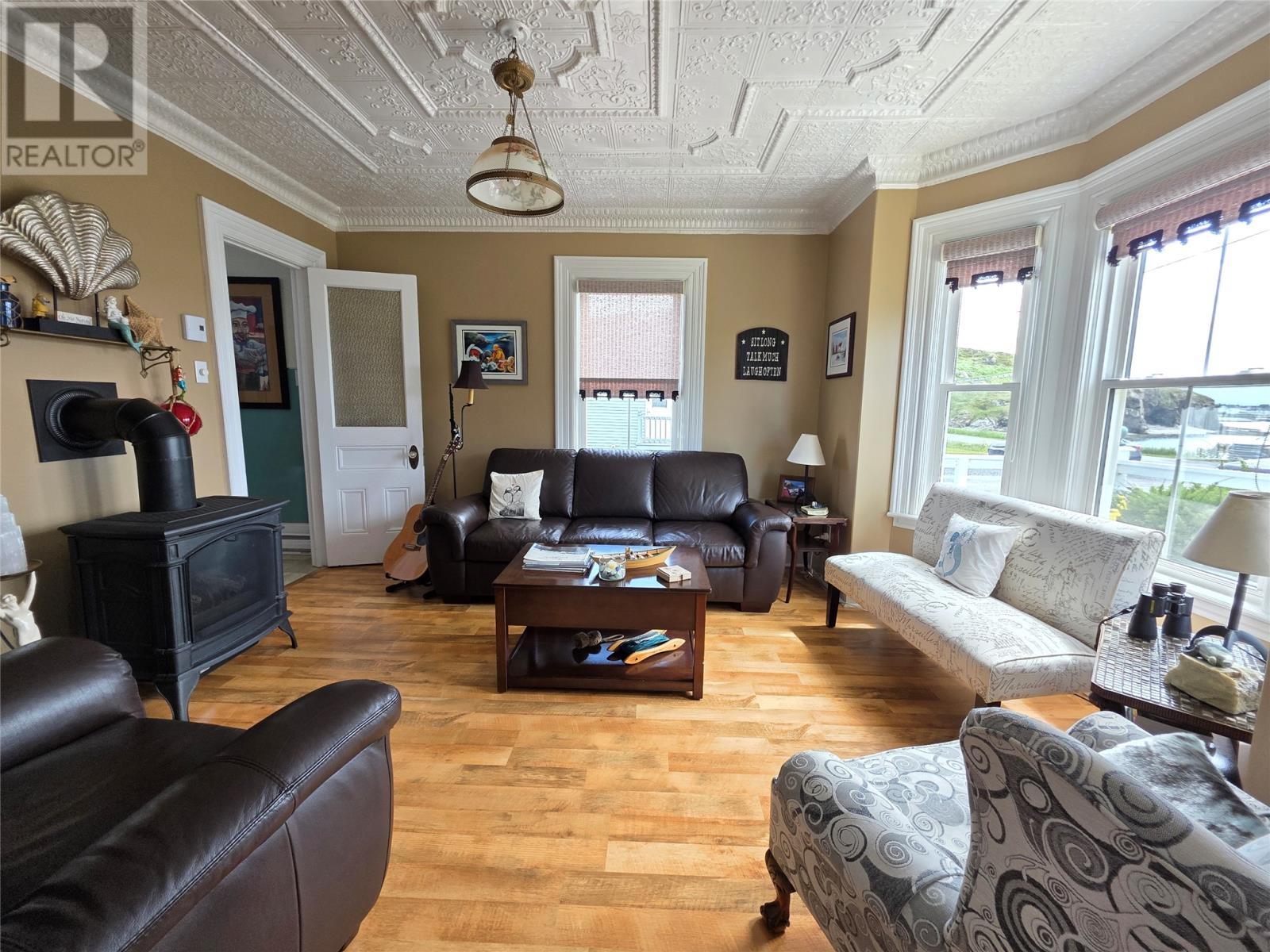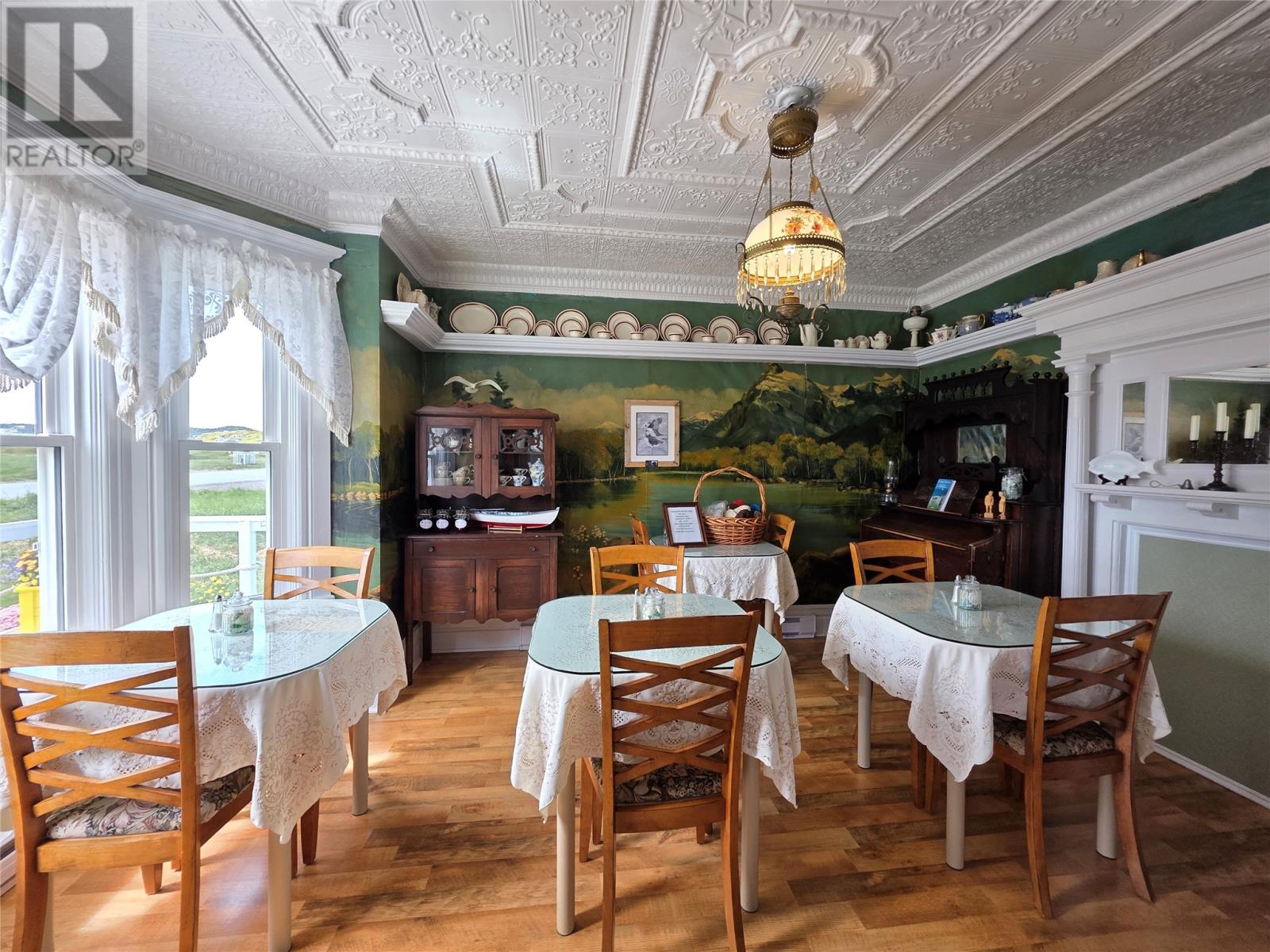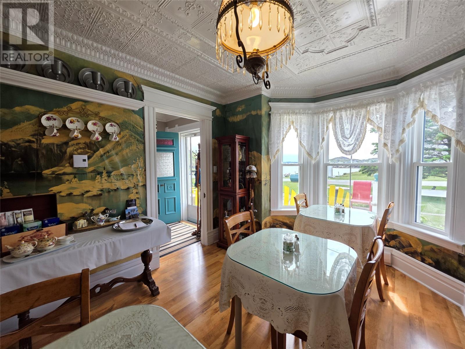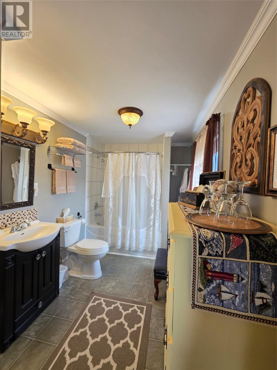 Step into a living piece of Newfoundland history with this breathtaking oceanfront bed and breakfast, now available in the heart of Twillingate. Built by hand in the 1880s by master furniture maker Ephram Jacobs, this home has been lovingly preserved by just two families over the past 110 years. Operating for over 20 years, Captain’s Legacy Historic Bed & Breakfast is a strong brand, the top rated bed & breakfast in Twillingate and one of the 5 top rated traveler reviewed bed & breakfast establishments in Newfoundland and Labrador. It still boasts original millwork, staircases, spindles, solid wood doors, hardware, and even a few original hanging light fixtures—testament to the craftsmanship of a bygone era. The main floor features 9-foot ceilings finished with pressed zinc, imported from Italy in 1912 for Jacobs’ daughter’s wedding. That same year, a beautiful pump organ was gifted and still stands in the dining room. Look closely and you’ll see that the dining room walls are lined with hand-painted sailcloth—an early work by an up-and-coming artist of the time. The home offers four charming guest bedrooms, each with a private ensuite, plus a third-floor owner’s retreat complete with a full bath, living area, and a bedroom with sweeping ocean views. The main level includes a grand entrance, cozy guest living room, guest-use kitchen, formal dining space, office, and one guest room. To the rear, you’ll find the owner’s private kitchen, laundry, and service entrance. Outside, the property stretches across the road to the ocean’s edge and includes a two-story outbuilding with incredible potential—perfect for additional guest suites, a studio, or workshop. Whether you’re seeking a turnkey business or a remarkable heritage home by the sea, this property is one of Twillingate’s rarest finds. (id:2887)