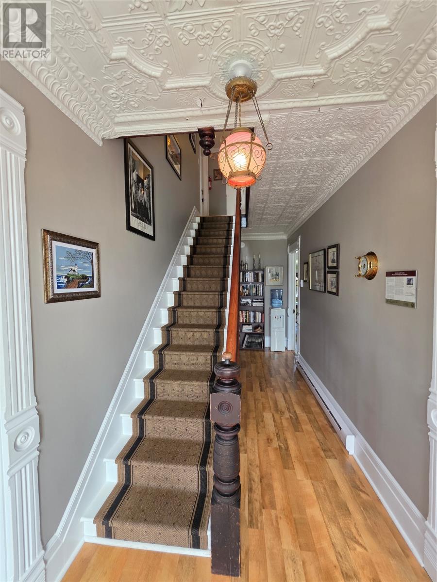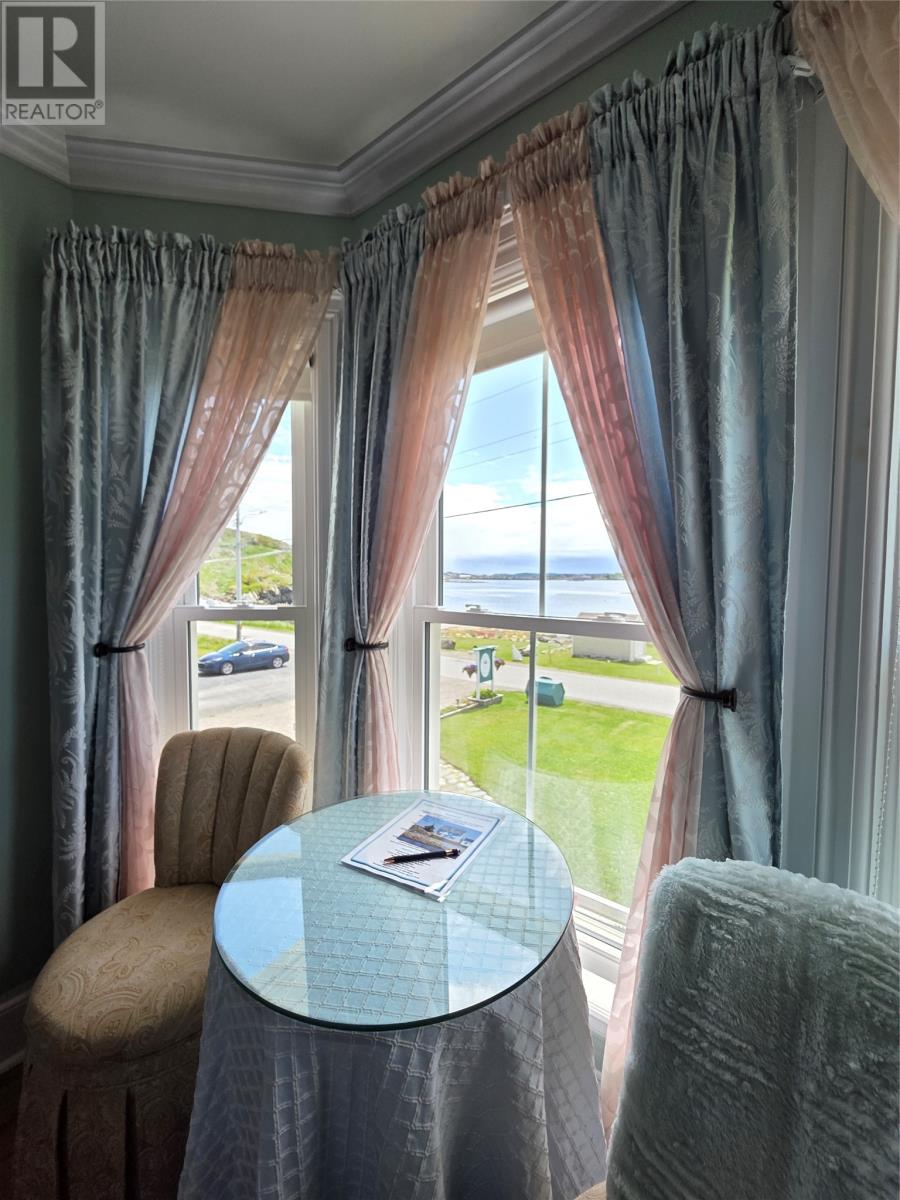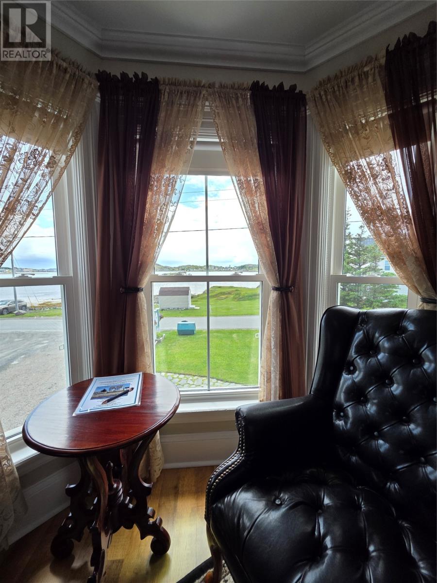 Step into a living piece of Newfoundland history with this breathtaking oceanfront bed and breakfast, now available in the heart of Twillingate. Built by hand in the 1880s by master furniture maker Ephram Jacobs, this home has been lovingly preserved by just two families over the past 110 years. Operating for over 20 years, Captain’s Legacy Historic Bed & Breakfast is a strong brand, the top rated bed & breakfast in Twillingate and one of the 5 top rated traveler reviewed bed & breakfast establishments in Newfoundland and Labrador. It still boasts original millwork, staircases, spindles, solid wood doors, hardware, and even a few original hanging light fixtures—testament to the craftsmanship of a bygone era. The main floor features 9-foot ceilings finished with pressed zinc, imported from Italy in 1912 for Jacobs’ daughter’s wedding. That same year, a beautiful pump organ was gifted and still stands in the dining room. Look closely and you’ll see that the dining room walls are lined with hand-painted sailcloth—an early work by an up-and-coming artist of the time. The home offers four charming guest bedrooms, each with a private ensuite, plus a third-floor owner’s retreat complete with a full bath, living area, and a bedroom with sweeping ocean views. The main level includes a grand entrance, cozy guest living room, guest-use kitchen, formal dining space, office, and one guest room. To the rear, you’ll find the owner’s private kitchen, laundry, and service entrance. Outside, the property stretches across the road to the ocean’s edge and includes a two-story outbuilding with incredible potential—perfect for additional guest suites, a studio, or workshop. Whether you’re seeking a turnkey business or a remarkable heritage home by the sea, this property is one of Twillingate’s rarest finds. (id:2887)