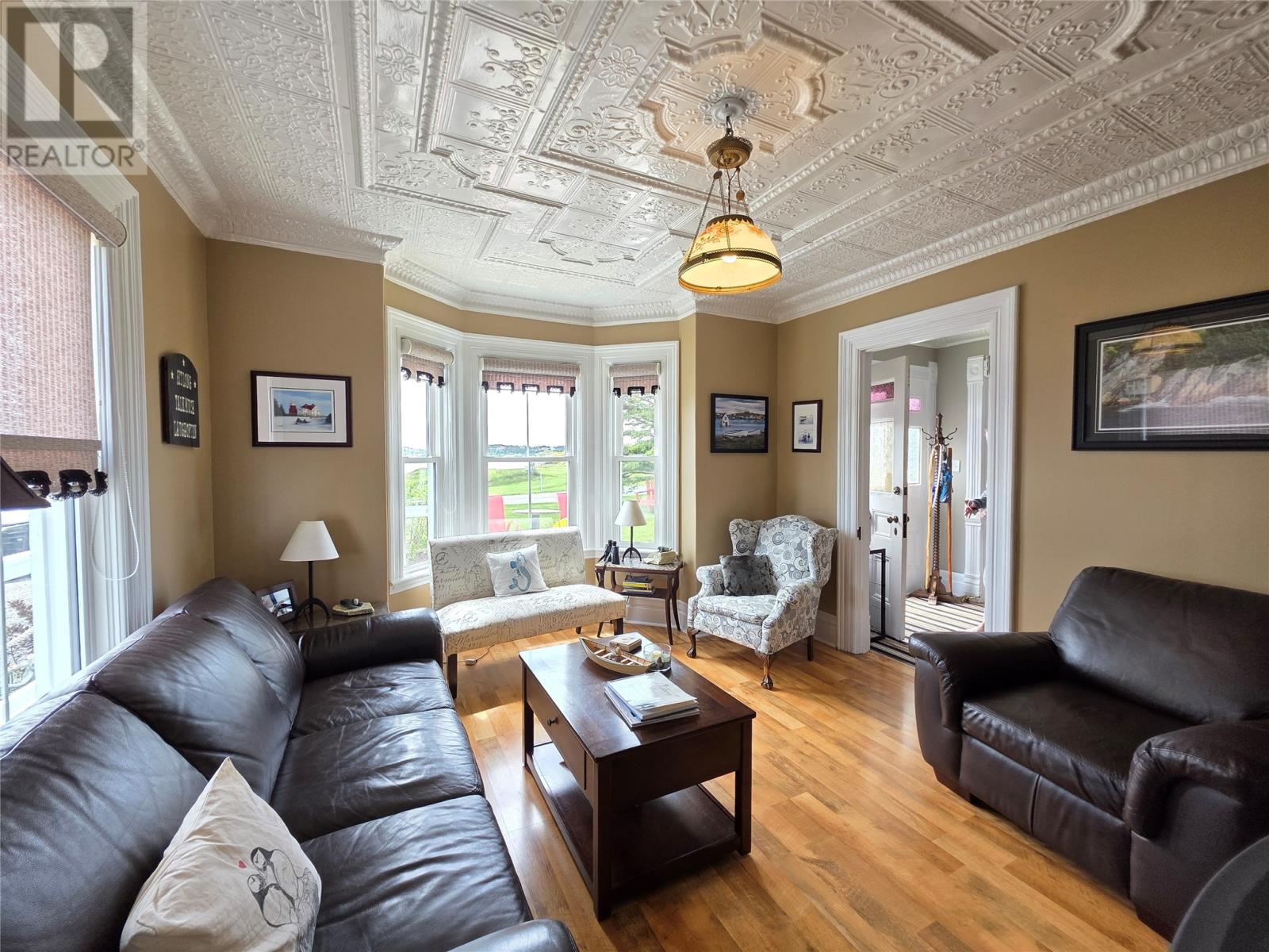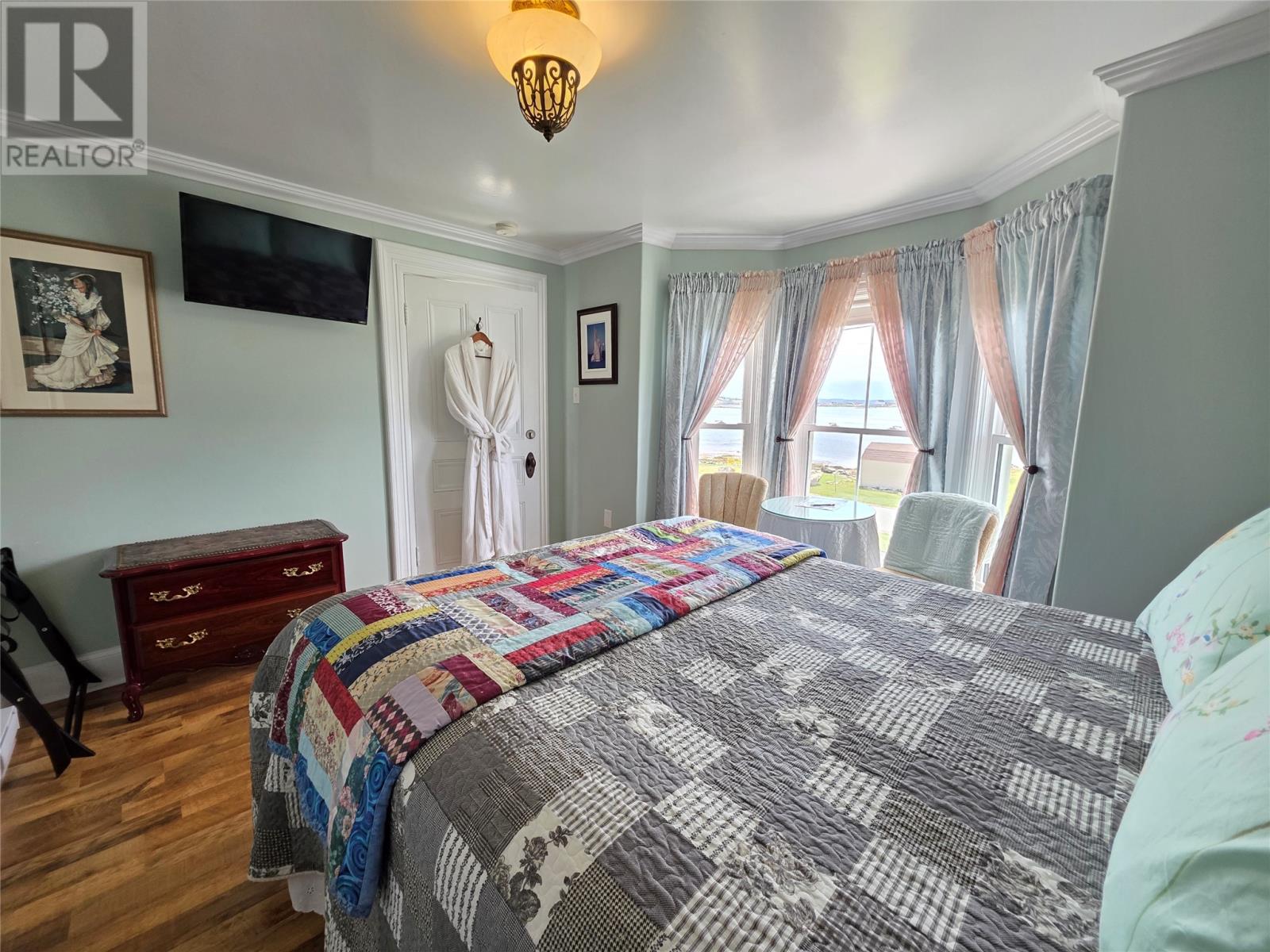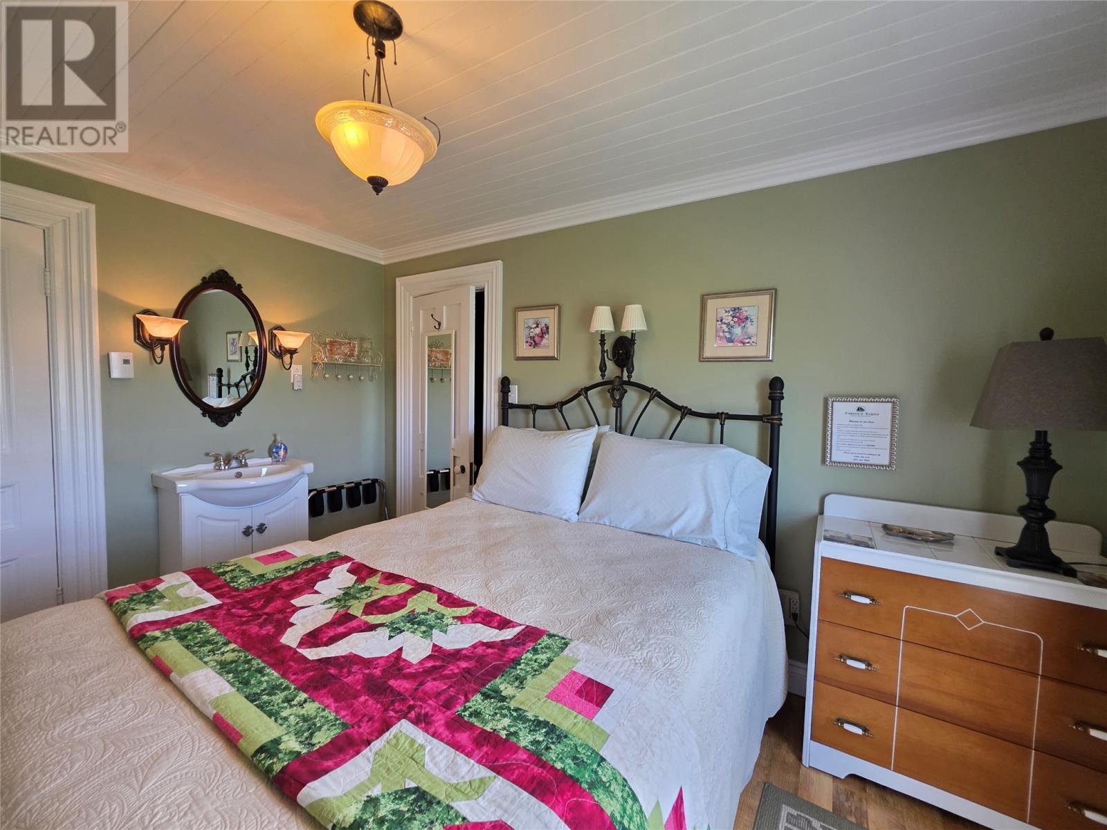 Step into a living piece of Newfoundland history with this breathtaking oceanfront bed and breakfast, now available in the heart of Twillingate. Built by hand in the 1880s by master furniture maker Ephram Jacobs, this home has been lovingly preserved by just two families over the past 110 years. Operating for over 20 years, Captain’s Legacy Historic Bed & Breakfast is a strong brand, the top rated bed & breakfast in Twillingate and one of the 5 top rated traveler reviewed bed & breakfast establishments in Newfoundland and Labrador. It still boasts original millwork, staircases, spindles, solid wood doors, hardware, and even a few original hanging light fixtures—testament to the craftsmanship of a bygone era. The main floor features 9-foot ceilings finished with pressed zinc, imported from Italy in 1912 for Jacobs’ daughter’s wedding. That same year, a beautiful pump organ was gifted and still stands in the dining room. Look closely and you’ll see that the dining room walls are lined with hand-painted sailcloth—an early work by an up-and-coming artist of the time. The home offers four charming guest bedrooms, each with a private ensuite, plus a third-floor owner’s retreat complete with a full bath, living area, and a bedroom with sweeping ocean views. The main level includes a grand entrance, cozy guest living room, guest-use kitchen, formal dining space, office, and one guest room. To the rear, you’ll find the owner’s private kitchen, laundry, and service entrance. Outside, the property stretches across the road to the ocean’s edge and includes a two-story outbuilding with incredible potential—perfect for additional guest suites, a studio, or workshop. Whether you’re seeking a turnkey business or a remarkable heritage home by the sea, this property is one of Twillingate’s rarest finds. (id:2887)