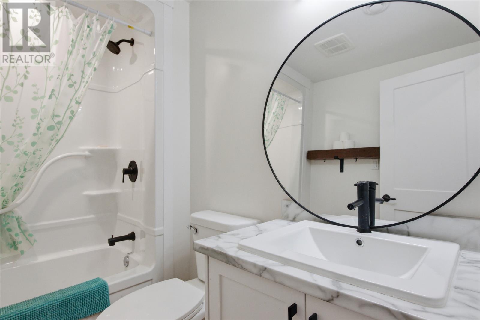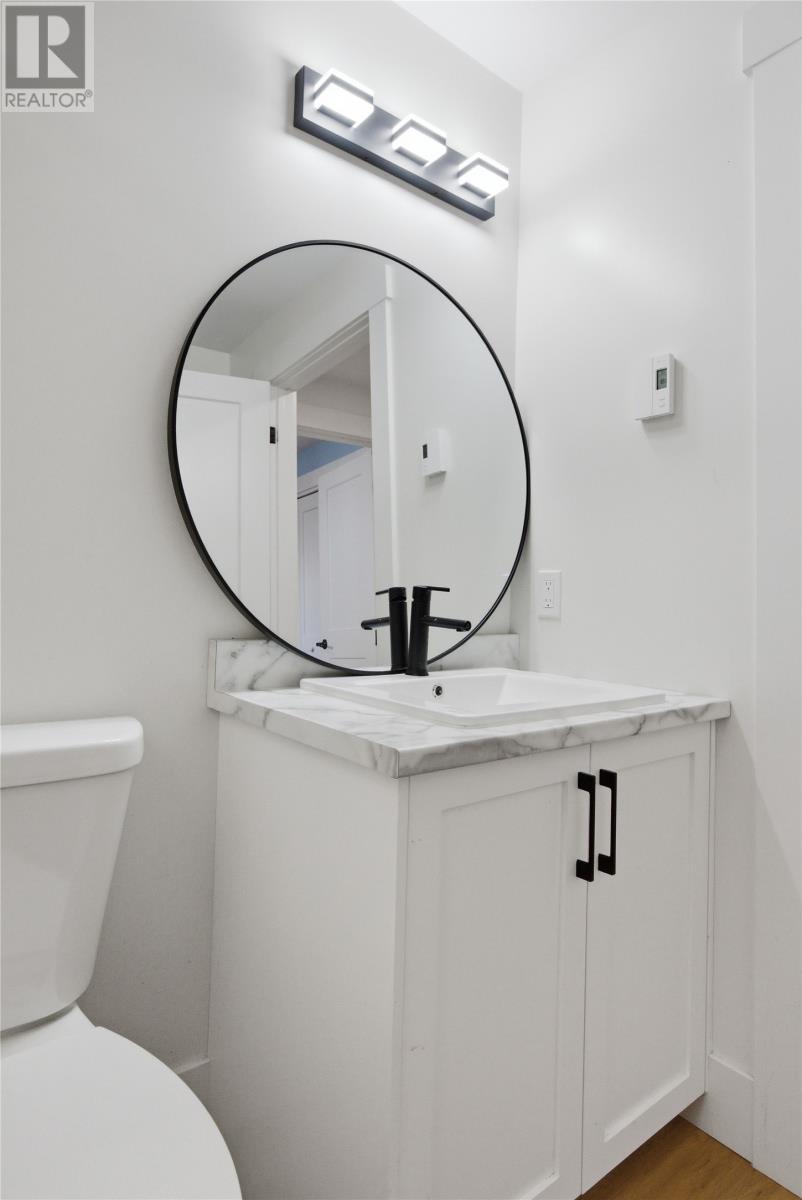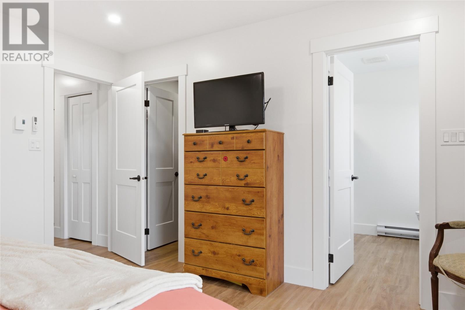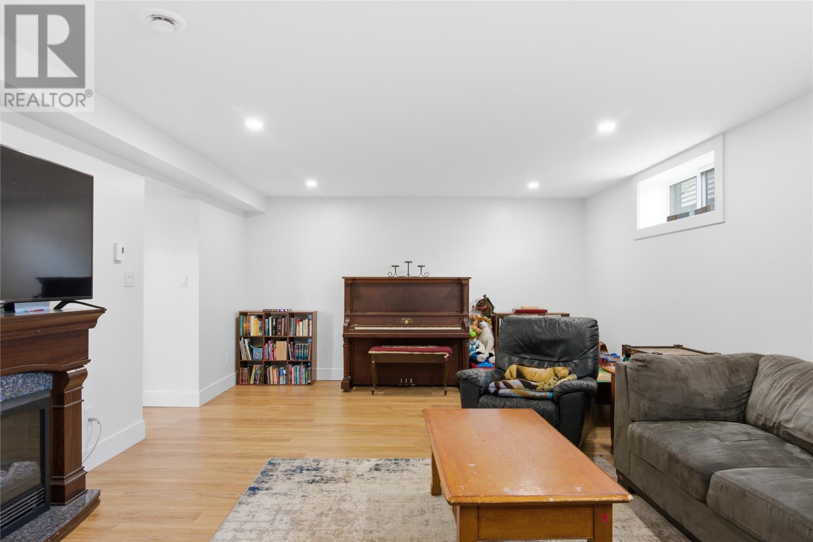 144 Penwell Avenue, Gander — 2023-built bungalow offering approximately 2,900 sq ft of finished living space on two levels in one of Gander’s most sought-after new subdivisions. The main floor features a bright, open-concept layout with luxury vinyl plank flooring and oversized windows throughout. The designer kitchen is the centrepiece — white shaker cabinetry, a large island with marble-look countertops and seating for four, subway tile backsplash accented by decorative tile behind the range, stainless steel appliances including a french-door fridge, and a walk-in pantry. The kitchen flows into a dining area with patio door access to the rear deck, and a spacious living room anchored by a tiled electric fireplace with reclaimed wood mantel. Three bedrooms on the main level include a primary suite with walk-in closet, 4-piece ensuite, and private balcony. A second full 4-piece bathroom and a foyer with closet complete the main floor. Attached garage with inside entry. The fully developed lower level adds two additional bedrooms, a third full bathroom, a large rec room, a dedicated home gym, a separate laundry room, and ample storage. Large above-grade windows keep the basement bright and functional. Comfort features include a ductless mini-split heat pump for efficient heating and cooling, electric baseboard heating, HRV system for fresh-air circulation, and modern matte black fixtures and designer lighting throughout. Exterior highlights: paved driveway, fully fenced rear yard, rear deck with room for outdoor dining, primary bedroom balcony, and mature neighbourhood amenities nearby. Balance of the 7-year Atlantic Home Warranty transferable to the new owner. A turn-key home built to current standards with thoughtful finishes throughout. As per Seller’s Direction, no offers will be presented until April 27 at 11AM – please leave all offers open for acceptance until 1PM the same day. (id:2887)