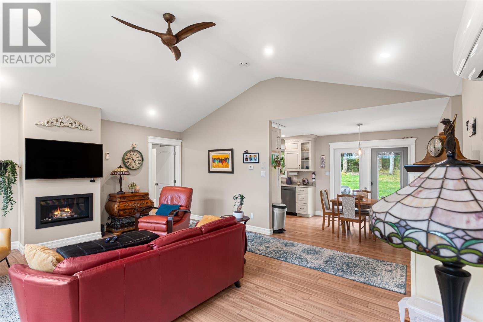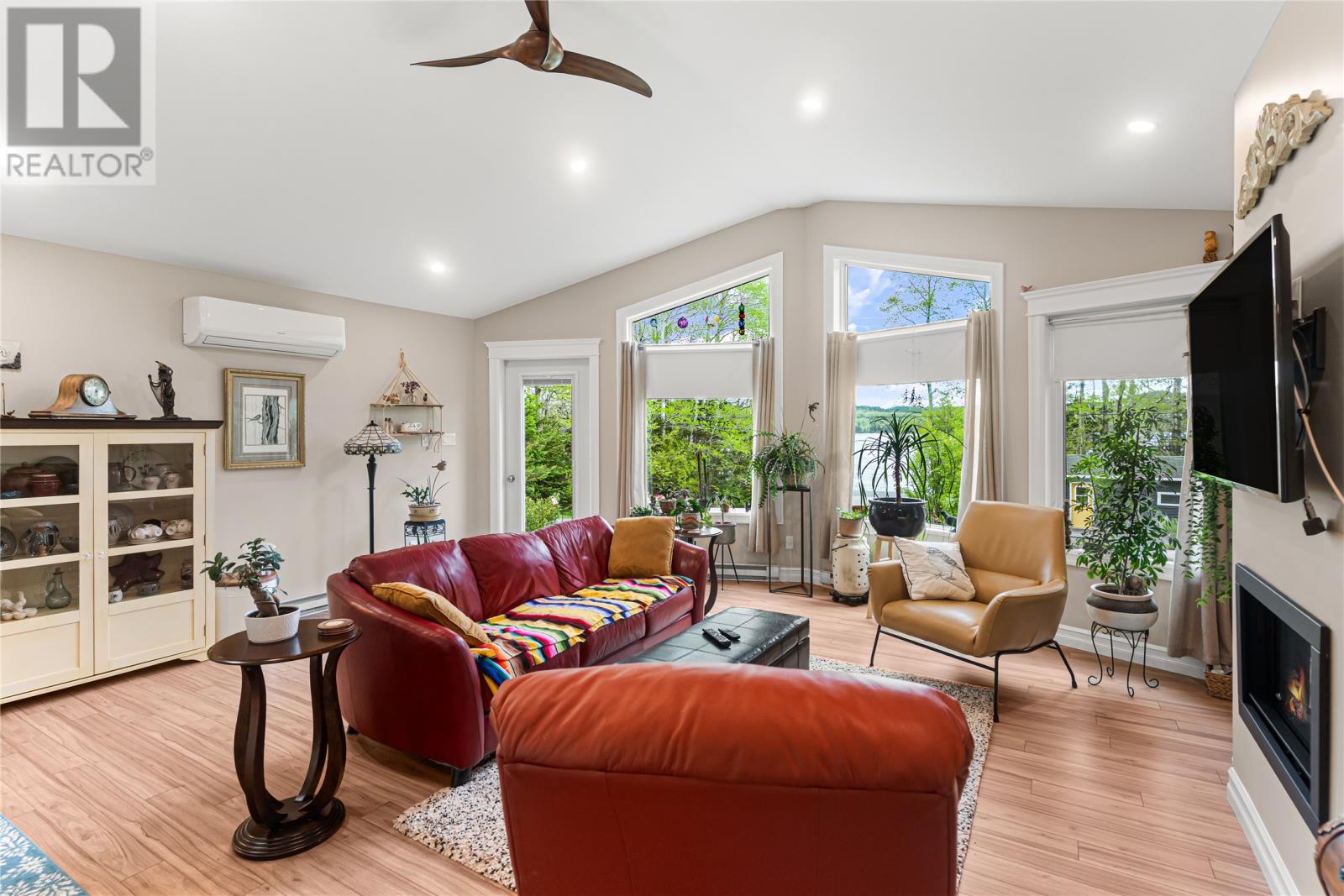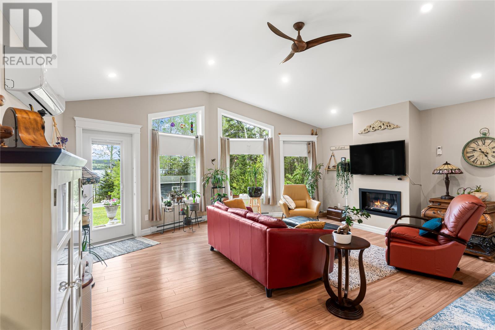 Discover the perfect blend of modern comfort and outdoor adventure with this stunning 3-bedroom, 2-bath chalet-style bungalow, ideally situated on a 2-acre ocean view lot in scenic Traytown. Just steps from Terra Nova National Park and minutes from the Trans-Canada Highway, this property offers the best of both worlds — a private retreat in nature with convenient access to all amenities. Built just 7 years ago, this well-maintained home features a maintenance-free steel roof, open-concept living, and thoughtful design. The spacious eat-in kitchen opens through garden doors to a private deck overlooking mature forest, where moose, foxes, and rabbits are regular visitors. The living room impresses with soaring 11′ cathedral ceilings, floor-to-ceiling windows, a cozy propane fireplace, and a mini-split heat pump for efficient year-round comfort. Designed for privacy, the primary bedroom suite with walk-in closet and ensuite is located on one wing, while two guest bedrooms and a full bath occupy the opposite side of the home — ideal for family living or hosting visitors. Step outside to enjoy direct access to the Trans Canada Trail System, making hiking, kayaking, ATVing, a daily possibility. The property also includes a paved driveway and a 24×14 detached garage, perfect for storing recreational gear, tools, or toys. This quiet seaside community is a paradise for outdoor lovers: Terra Nova River (renowned for salmon fishing) is minutes away in neighbouring Glovertown Explore nearby white sand beaches, the Damnable Trail system, and two golf courses within an hour’s drive Marina access and some of Newfoundland’s best boating opportunities just around the corner Conveniently located just 2.5 hours from St. John’s and only minutes off the TCH, this property offers a peaceful lifestyle without compromising on accessibility. Whether you’re looking for a year-round home, seasonal escape, or income property, this is one you don’t want to miss (id:2887)
