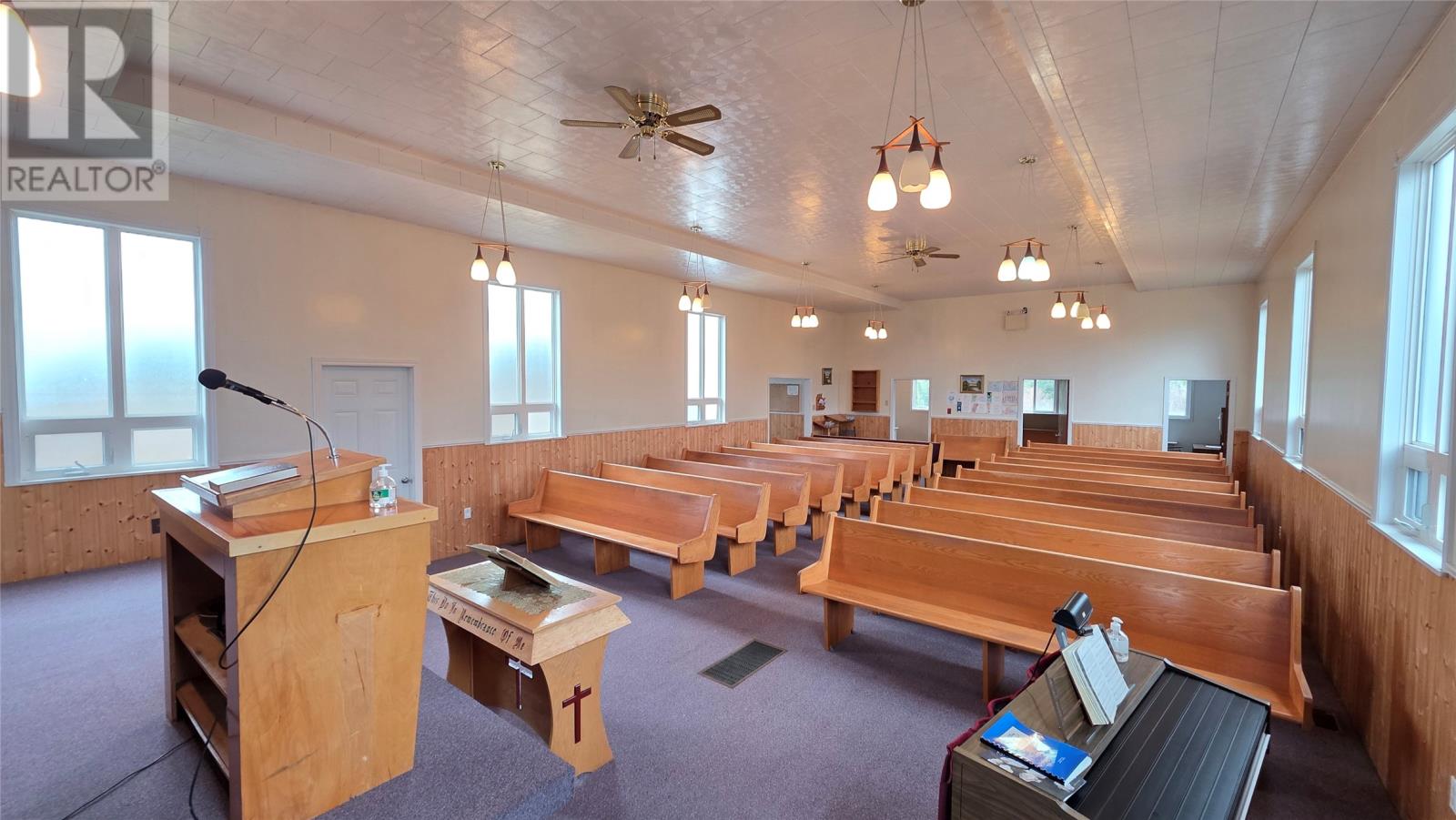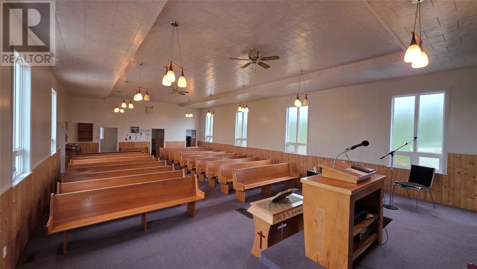 Discover a rare opportunity in the heart of the charming community of Change Islands, Newfoundland & Labrador. This well-built single-story former Pentecostal Church sits on a spacious parcel of land directly across from the ocean, offering sweeping coastal views and endless potential. Inside, the building’s solid construction and open layout provide a blank canvas—perfect for transforming into a year-round residence, seasonal getaway, studio, workshop, or commercial venture. Whether you dream of creating a serene retreat or launching a unique island business, this property offers the room and flexibility to make it happen. Outside, you’ll find ample parking and plenty of land to expand, garden, or simply enjoy the quiet beauty of its surroundings. The community itself is warm and welcoming, known for its scenic landscapes, peaceful pace, and authentic outport charm. Key Features: Single-story, well-built former church Large lot with generous parking Stunning ocean views directly across the road Endless potential for redevelopment Located in the picturesque community of Change Islands This is a one-of-a-kind opportunity to own a landmark property in a truly special part of Newfoundland & Labrador. Bring your vision—and let the beauty of Change Islands inspire you. (id:2887)