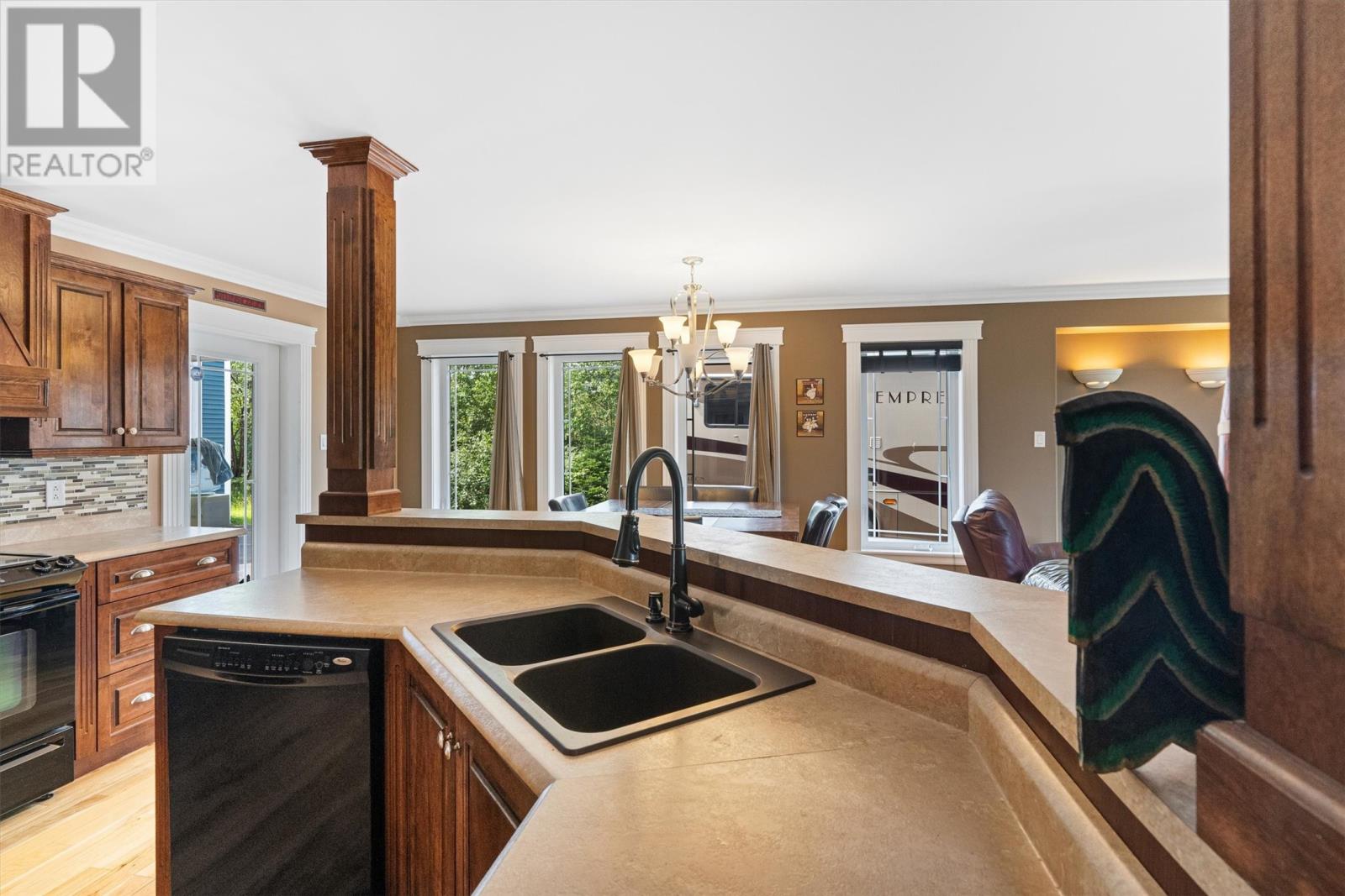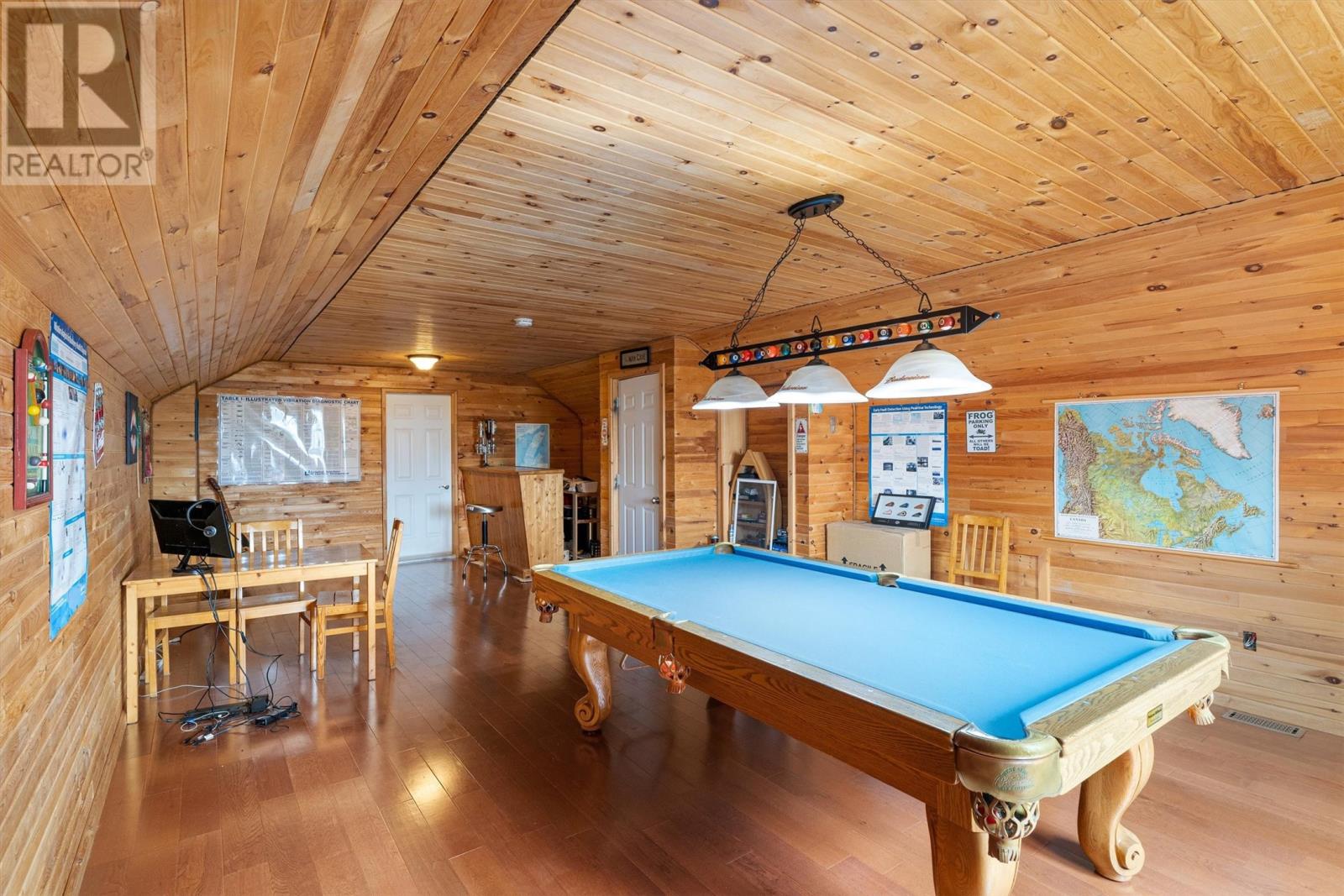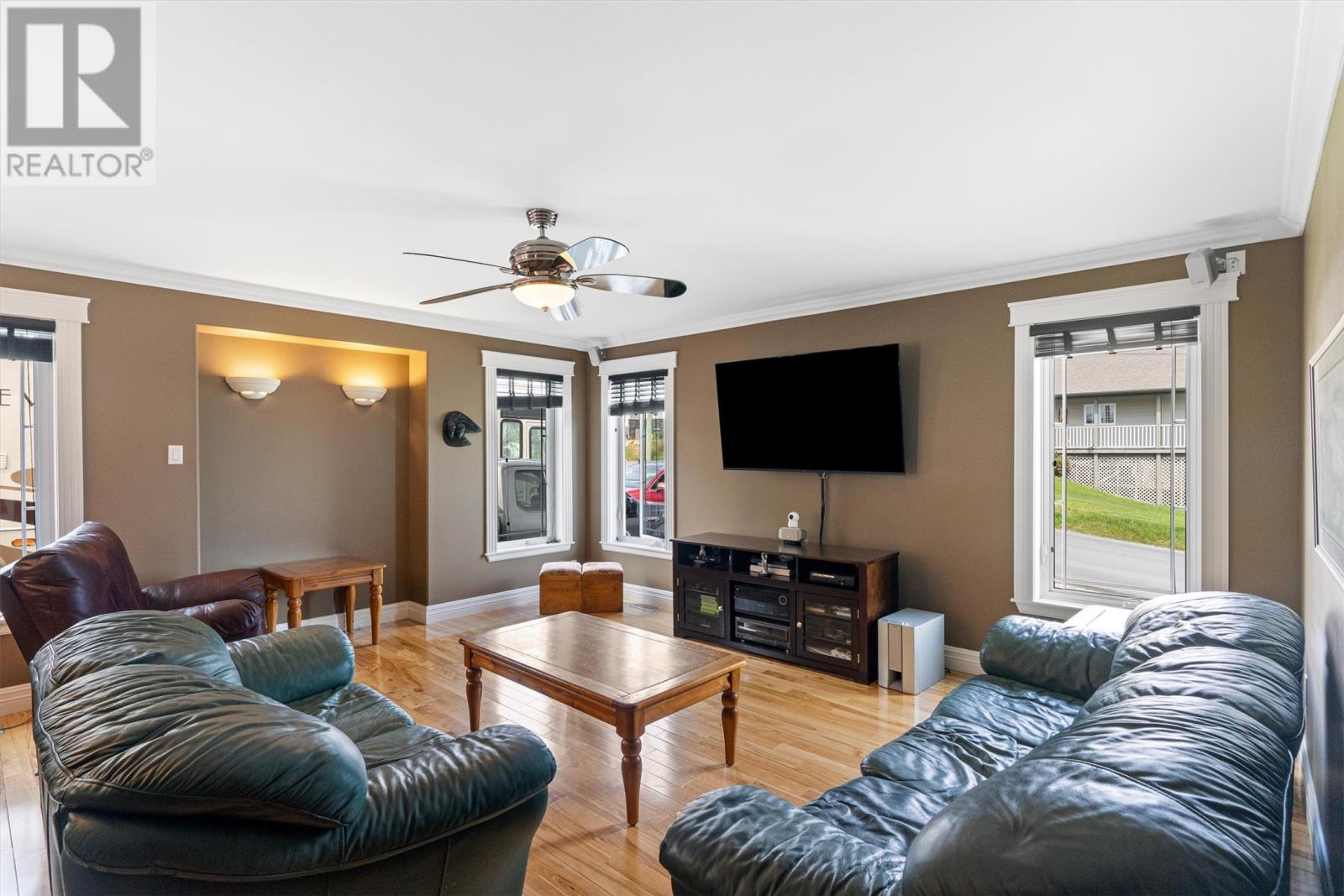 Welcome to 35 Alexander Crescent, nestled in the scenic coastal community of Glovertown. This stunning 3-bedroom, 2.5-bath home offers a perfect blend of comfort, functionality, and coastal charm. Built in 2009, this residence features main-floor living with an open-concept design, ideal for families or those seeking a peaceful retreat. The spacious interior boasts a well-appointed kitchen with ample cabinetry and storage, a welcoming dining area, and a cozy living room. Upstairs, you’ll discover a billiards room complete with a pool table—perfect for entertaining—and the potential to add a wet bar, as water lines are already in place. The three bedrooms are generous in size, with the primary bedroom featuring a private full bath and walk in closet. The main floor also includes a laundry area, a gym space, and a second full bath. The partially developed basement offers versatile space for storage, additional bedroom options, bathroom, or a rec room to suit your lifestyle. Outside, enjoy the expansive partially covered deck that spans half the home, providing breathtaking ocean views of the harbor and Eastport Peninsula—an ideal spot for relaxing or entertaining guests. Parking is a breeze with two paved driveways accommodating multiple vehicles. The property features a double detached garage with a 14-foot door and 16-foot ceilings, perfect for hobbies or additional storage. The attached garage is plumbed for in-floor heating, with the infrastructure already in place, ready for future upgrades. Built on a corner lot in a quiet, new subdivision, this home is constructed with premium blue spruce siding, 30-year shingles, and a 12-inch ice block frost barrier beneath the concrete floor for added warmth. The property is equipped with a modern heat pump installed three years ago, backed by a 10-year transferrable warranty. If you’re seeking a home that offers space, comfort, and spectacular ocean views in a peaceful community, don’t miss this opportunity. (id:2887)