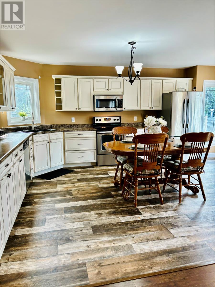 Picture perfect unique A frame custom home awaits its new family or investors! Prepare to be amazed not only with the beautiful home, great layout but also investment opportunity. The home offers bright open concept main floor, large windows that fill the spacious rooms with natural light & beauty. Features such as vaulted ceilings, entertainment sized eat in kitchen perfect for gatherings, ample cabinet/counter space, gorgeous living room with walkout to patio. Primary bedroom on main floor with extra large walk in closet and ensuite perfect for retirees or just plain privacy from the kids! Upper level features 2 spacious b/rooms, bathroom, laundry & unique balcony overlooking main floor. Use the space at the top of stairs as a reading or yoga nook. Custom Composite decking /vinyl rails, fin basment/washroom, 200 amp, 20 x 16 detached garage adds to the value of this beautiful home with investment potential as a short term rental/airbnb. Located on the Loop towards Lumsden, Musgrave Harbor, Twillingate, FOGO Island Ferry routes. Skidoo trails nearby with amazing fishing destinations close by. Shopping, gas stations, schools, parks, places of worship are all within either walking or a short drive. Hospital in Gander approx 1 hour away, Medical clinic and Ambulance/911 near by as well. (id:2887)