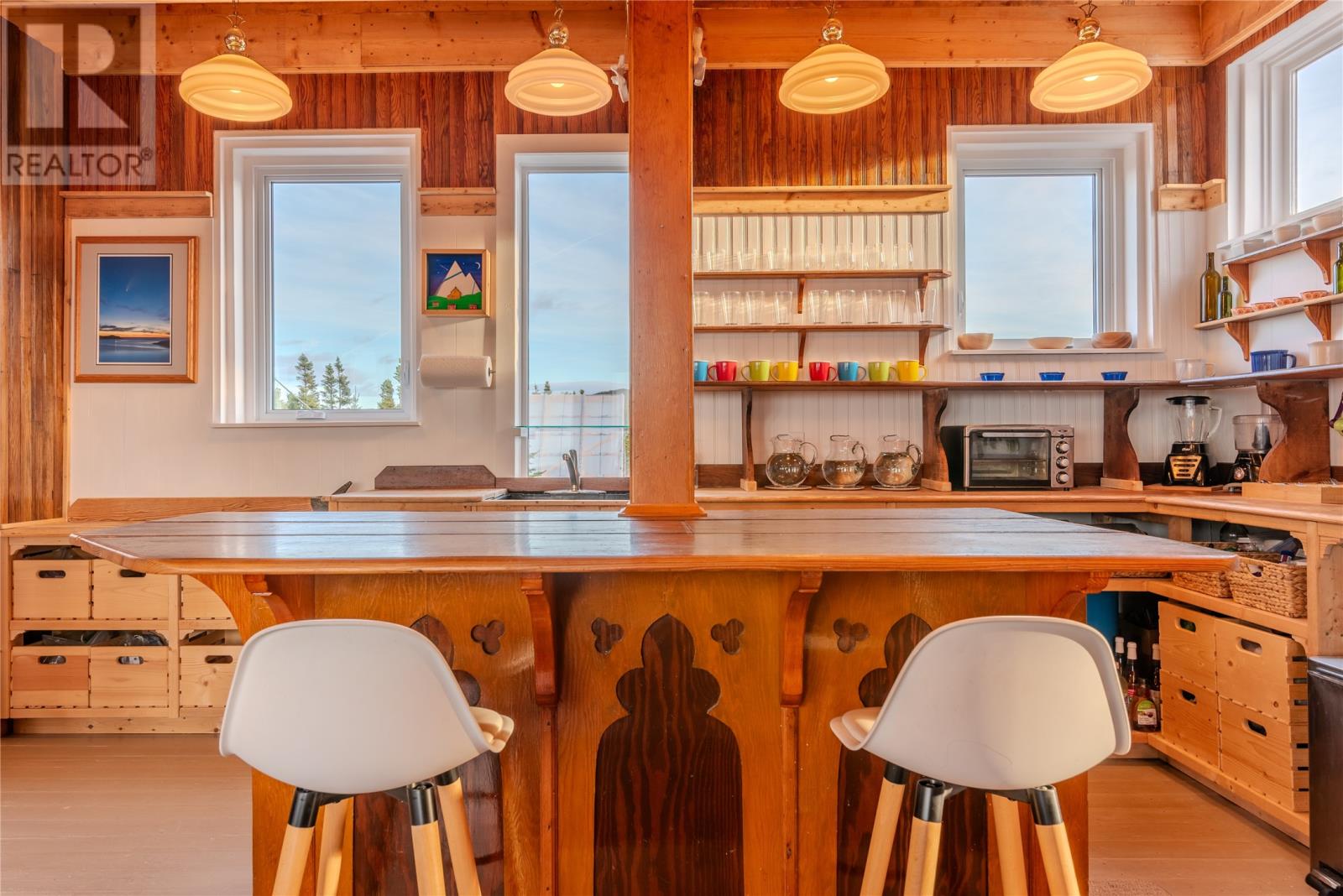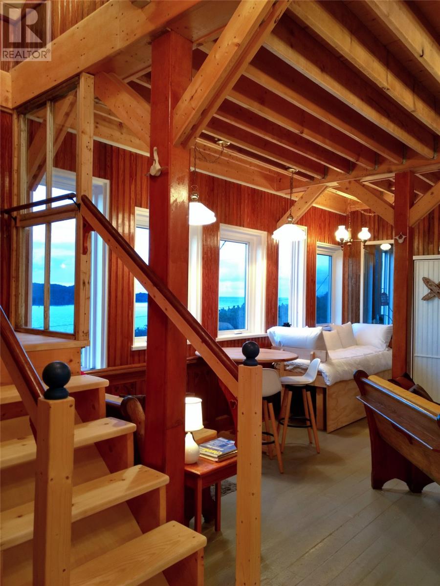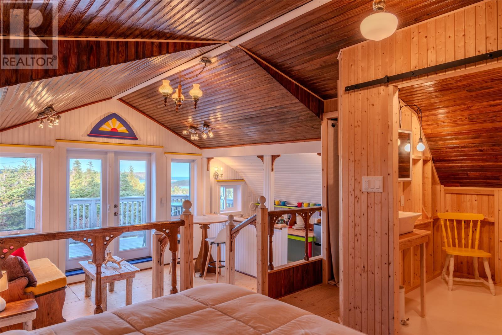 Imagine watching icebergs & whales while sipping your favorite drink in a stunningly converted 115 year old church that overlooks 2 separate bays. At the edge of the “Iceberg Alley” in Newfoundland Canada, North America’s most Northeastern island, where icebergs drift by during spring and summer. Amazing privacy w/ sweeping vistas in all directions on almost 3 acres surrounded by Crown land. Thoughtfully converted eco conscious rehab into a yr. round residence, w/ocean views from almost every room. Artisanally built cafe tables, kitchen counters, love seats & bed, made from repurposed antique pews. Lighthouse tower w/remote control. Can see 4 lighthouses from deck. Building is cabled down like in “Shipping News”. Only known NL structure still cabled down. A navigational landmark for mariners for over a century. Original antique & vintage light fixtures throughout. Filled w/ natural light from skylights, transom & int. windows. Natural woods & finishes, repurposed materials & artifacts, Grey water system & composting toilets emphasize its eco-conscious design. Cedar shingles, 10’ ceilings, exposed beams, enhanced structure. Insulated for yr rnd use. 490 s.f. raw studio/workshop space. Separate apt. w/private balcony overlooking both bays. Outdoor shower rm w/skylight roof. Lot’s of well groomed walking trails & paths through lush moss covered forests & wild berry patches to spectacular ocean lookouts on property. Blueberries, partridgeberries, & other wild berries on site. Wildlife abounds. Every day is like living in a National Geographic Special. World class coastal hiking trails & secluded beaches, mins away. 20 mins to Twillingate, a popular int’l. tourist destination, 1.25 hrs to Gander Airport. Potential for subdividing for additional homesites, or cabins. Would make a fabulous private retreat, B&B, lodge, artist studio or gallery, &/or cafe. Many more unique feature…too many to list! Almost limitless possibilities…truly a once in a lifetime opportunity! (id:2887)