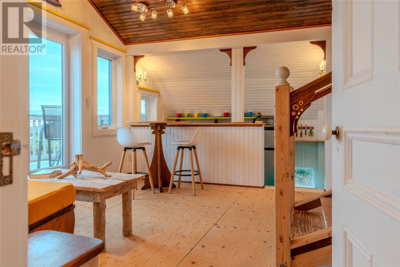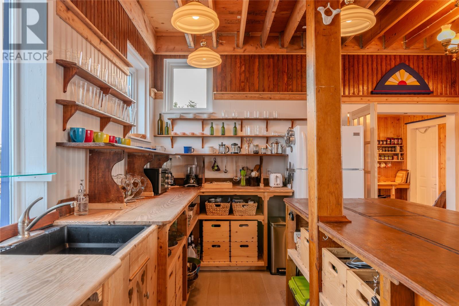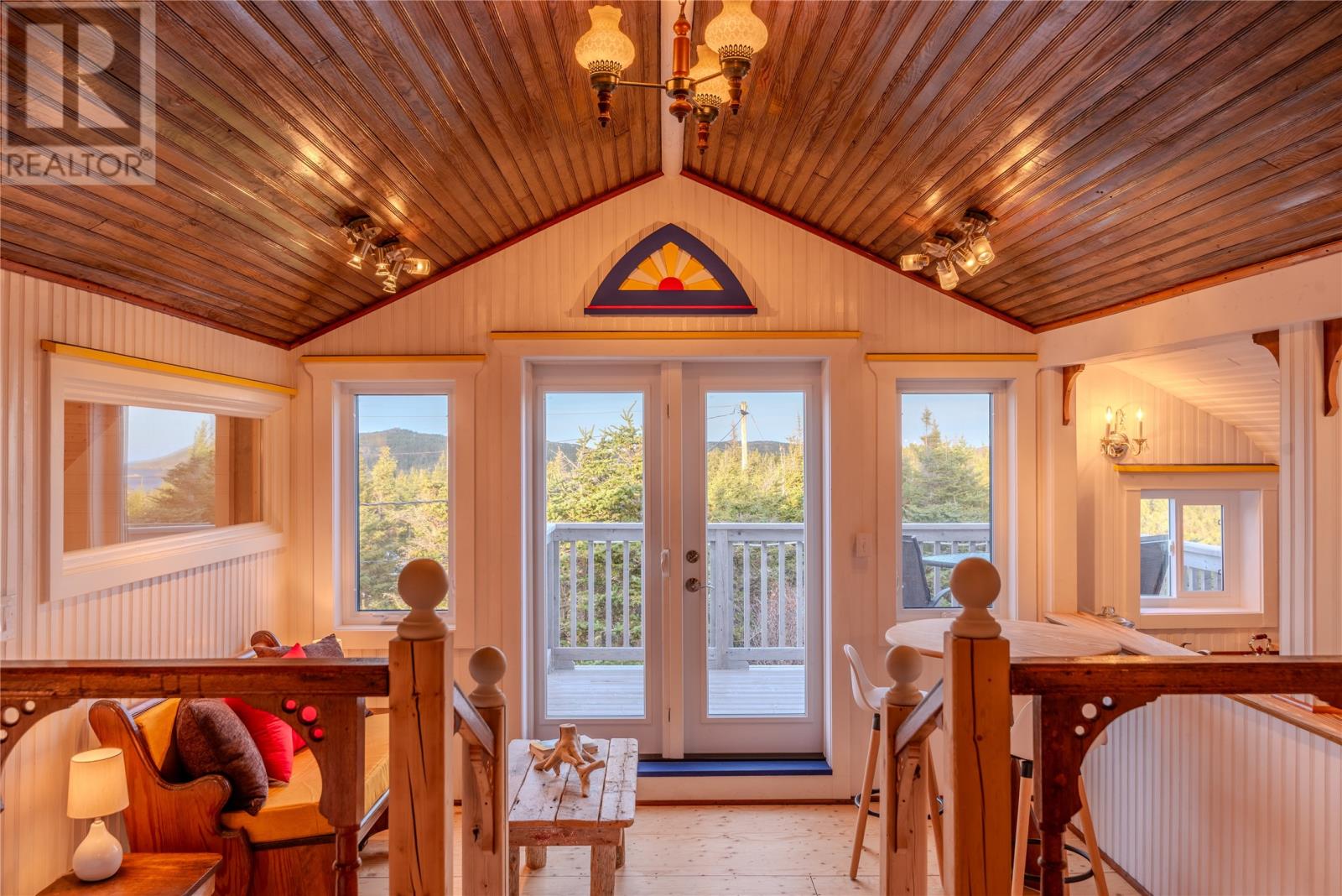 Imagine watching icebergs & whales while sipping your favorite drink in a stunningly converted 115 year old church that overlooks 2 separate bays. At the edge of the “Iceberg Alley” in Newfoundland Canada, North America’s most Northeastern island, where icebergs drift by during spring and summer. Amazing privacy w/ sweeping vistas in all directions on almost 3 acres surrounded by Crown land. Thoughtfully converted eco conscious rehab into a yr. round residence, w/ocean views from almost every room. Artisanally built cafe tables, kitchen counters, love seats & bed, made from repurposed antique pews. Lighthouse tower w/remote control. Can see 4 lighthouses from deck. Building is cabled down like in “Shipping News”. Only known NL structure still cabled down. A navigational landmark for mariners for over a century. Original antique & vintage light fixtures throughout. Filled w/ natural light from skylights, transom & int. windows. Natural woods & finishes, repurposed materials & artifacts, Grey water system & composting toilets emphasize its eco-conscious design. Cedar shingles, 10’ ceilings, exposed beams, enhanced structure. Insulated for yr rnd use. 490 s.f. raw studio/workshop space. Separate apt. w/private balcony overlooking both bays. Outdoor shower rm w/skylight roof. Lot’s of well groomed walking trails & paths through lush moss covered forests & wild berry patches to spectacular ocean lookouts on property. Blueberries, partridgeberries, & other wild berries on site. Wildlife abounds. Every day is like living in a National Geographic Special. World class coastal hiking trails & secluded beaches, mins away. 20 mins to Twillingate, a popular int’l. tourist destination, 1.25 hrs to Gander Airport. Potential for subdividing for additional homesites, or cabins. Would make a fabulous private retreat, B&B, lodge, artist studio or gallery, &/or cafe. Many more unique feature…too many to list! Almost limitless possibilities…truly a once in a lifetime opportunity! (id:2887)
