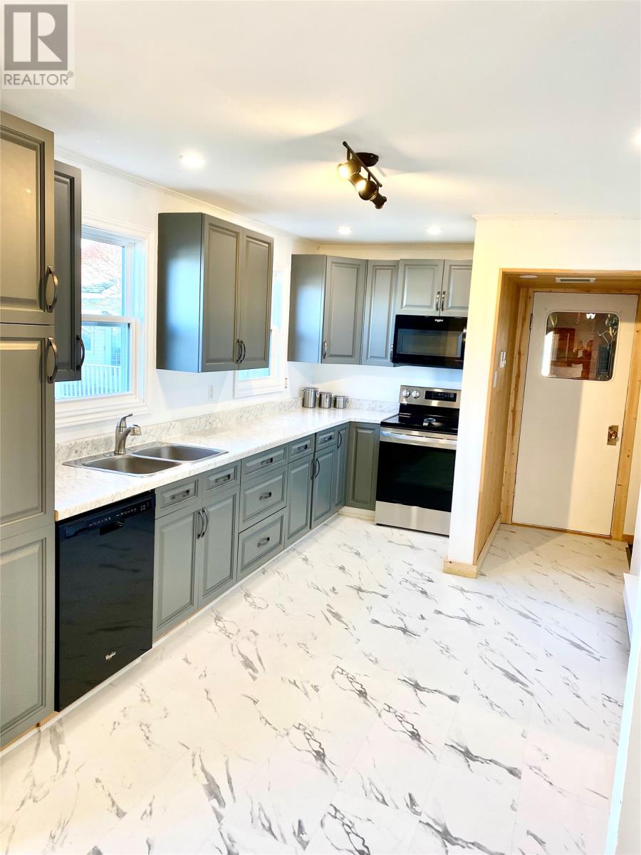Charming Waterfront Home on Double-Sized Lot in the Heart of Glovertown- This rare gem, located on a spacious double-sized lot, offers serene waterfront living with a great view of the local marina. The extra lot is already serviced so would be ideal for a second residence if desired. Nestled in the heart of Glovertown, this home provides a peaceful retreat while keeping you close to all the conveniences of town life. Features include: • Newly Renovated Kitchen: Modern and stylish with a brand new LG fridge and range! Perfect for cooking and entertaining with picturesque water views.• Three Spacious Bedrooms Upstairs: Perfect for families, each bedroom offers comfort and natural light, with plenty of closet space. • Full Bath on the Second Floor: A well-appointed full bathroom upstairs provides convenience and style. • Woodstove in the Basement: Stay cozy during the colder months with this charming, energy-efficient feature. • Expansive Backyard: A large outdoor space perfect for gatherings, gardening, or relaxation. • Attached Garage: Spacious for parking and storage. • Large Shed: Ideal for extra storage, a workshop, or hobby space. • Stunning Water Views: Enjoy the tranquil sights of the marina, or a panoramic view of Alexander Bay from your own backyard. Across the water you can see the lights at night from the North side of Glovertown. This home combines modern upgrades, spacious living, and stunning water views. Don’t miss out on this rare opportunity to own a beautiful waterfront property with endless potential! (id:2887)