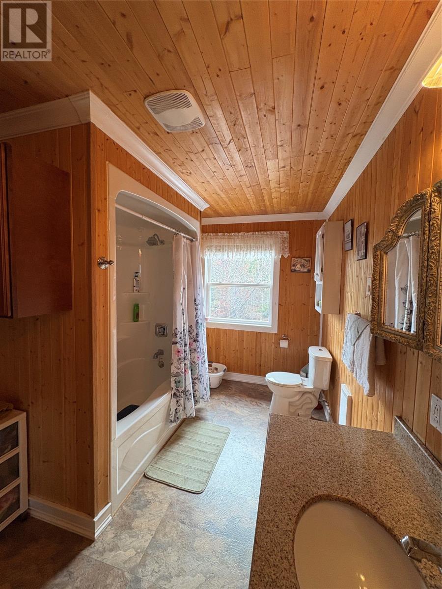 Whether you’re in search of a cottage retreat or year round living, this is the perfect property for you. This beautiful split entry home is situated on the waters edge in the quiet and quaint little town of Norris Arm North, over looking the bay, in a secluded little cove. This property consist of 2 large bedrooms, a bath, open concept kitchen, living and dining. The walkout basement contains the laundry room area and is undeveloped but has the potential for a rec room or anything you want it to be, and its plumbed out for an extra bath. Step outside on the patio and enjoy the beautiful view of the cove while watching geese and ducks migrate in and out. With mature trees all around there is plenty of privacy. There’s also the potential to construct a crib and floating dock for your boat. With vast country and trails nearby this is the ideal location for outdoor activities and enthusiasts, plus it’s a prime destination for ice fishing in the winter. This home has a 200AMP panel and it’s heated with electric fan forced heaters and option for a wood stove in the basement. It’s constructed with 2’x6′ walls, all pine interior and trim….no gyproc or MDF!! The view is amazing….don’t let this one pass you by. Listed at $289,900.00 (id:2887)