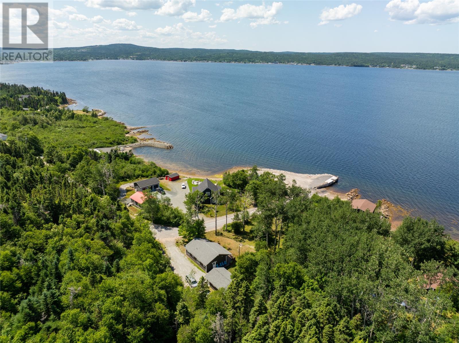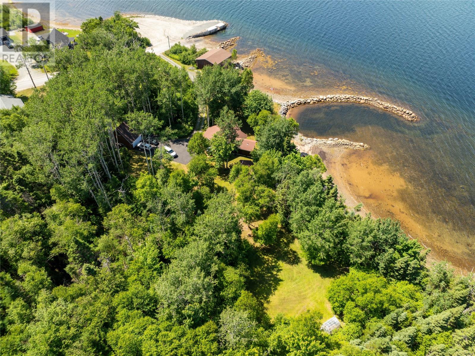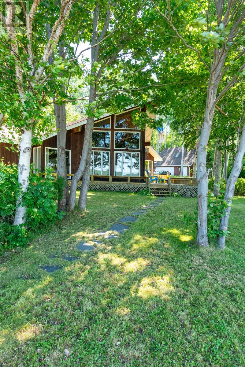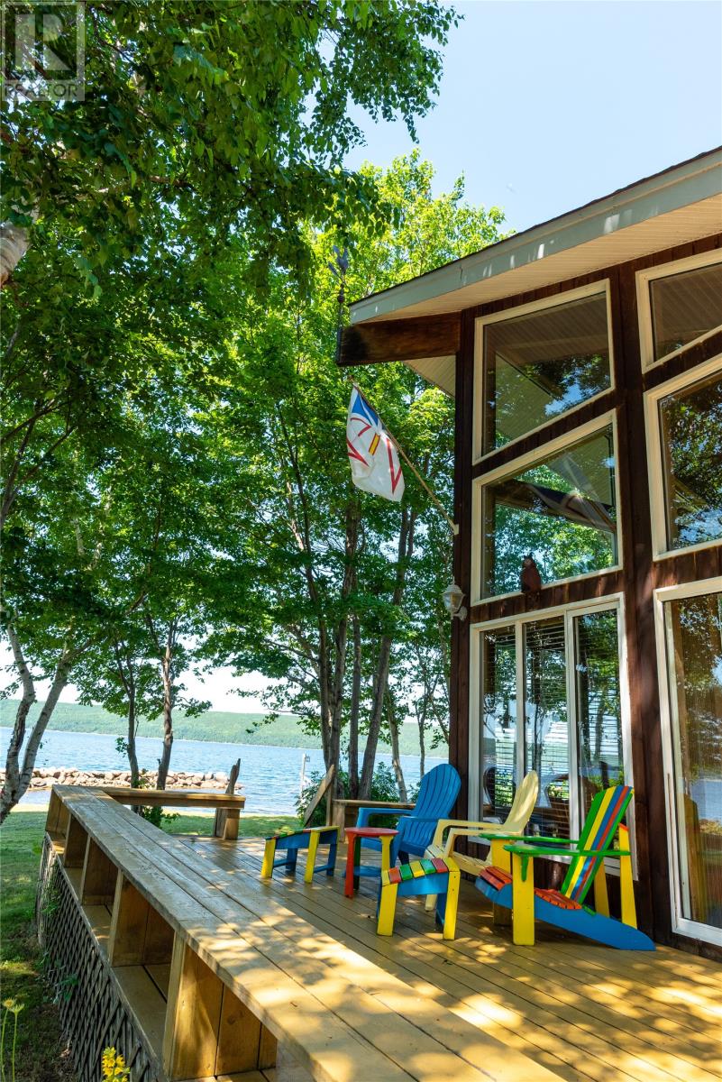 Welcome to this stunning waterfront retreat nestled on nearly 3 acres of land. This property offers the perfect blend of charm, modern comfort, and incredible outdoor living. Whether you’re seeking a full-time residence or a seasonal getaway, this home delivers privacy, space, and a true connection to nature. Tucked among mature trees, the home offers exceptional seclusion. A spacious wraparound deck showcases breathtaking views of the bay—perfect for morning coffee or unwinding in the evening. A gently sloping lawn leads to your own private shoreline, with a mix of sandy beach and rocky point—ideal for kayaking, swimming, boating, or relaxing by the firepit. Perfect for outdoor and boating enthusiasts, this property includes two detached garages, one of which houses a John Deere tractor to help launch the floating dock for large boats and yachts. The boathouse, measuring over 30 feet and located near the water’s edge, offers direct access to the bay. A breakwater protects your vessel from rough waves during high winds, ensuring safe storage and peace of mind. There’s also a greenhouse, providing space for gardening and self-sufficiency, and more than enough room on the land for future expansion or recreation. Inside, the home features vaulted ceilings, wood finishes, and expansive windows that flood the living space with natural light. The cozy living room includes an airtight wood stove set in a natural rock fireplace, creating a warm, rustic focal point. The main level offers a bright kitchen and dining area, guest bedroom, full bath, and a spacious primary suite with a 4-piece ensuite. Upstairs, a large open loft overlooks the living room and provides extra living space for guests, a home office, or a family room. Located just minutes from Glovertown and breathtaking trails of Terra Nova National Park, this is more than just a property—it’s a lifestyle. If you’re dreaming of peaceful waterfront living with space to roam, this is the perfect place to call home! (id:2887)