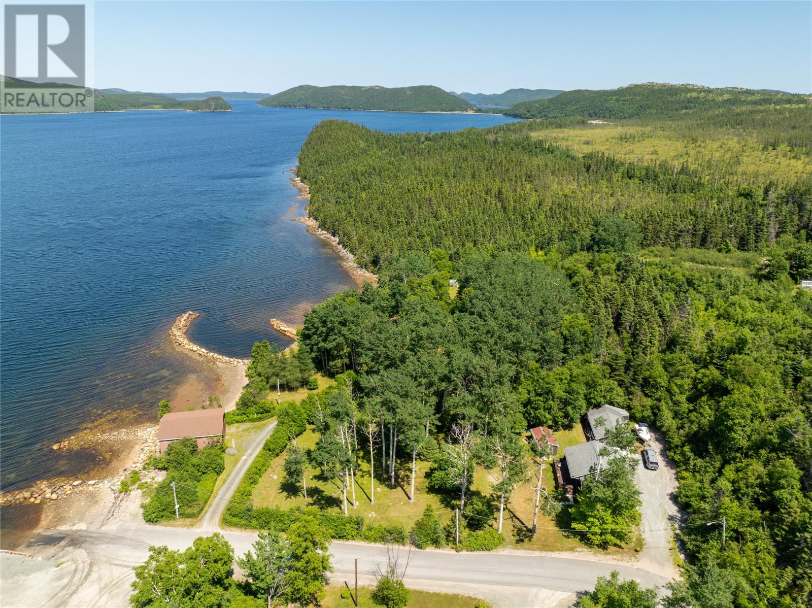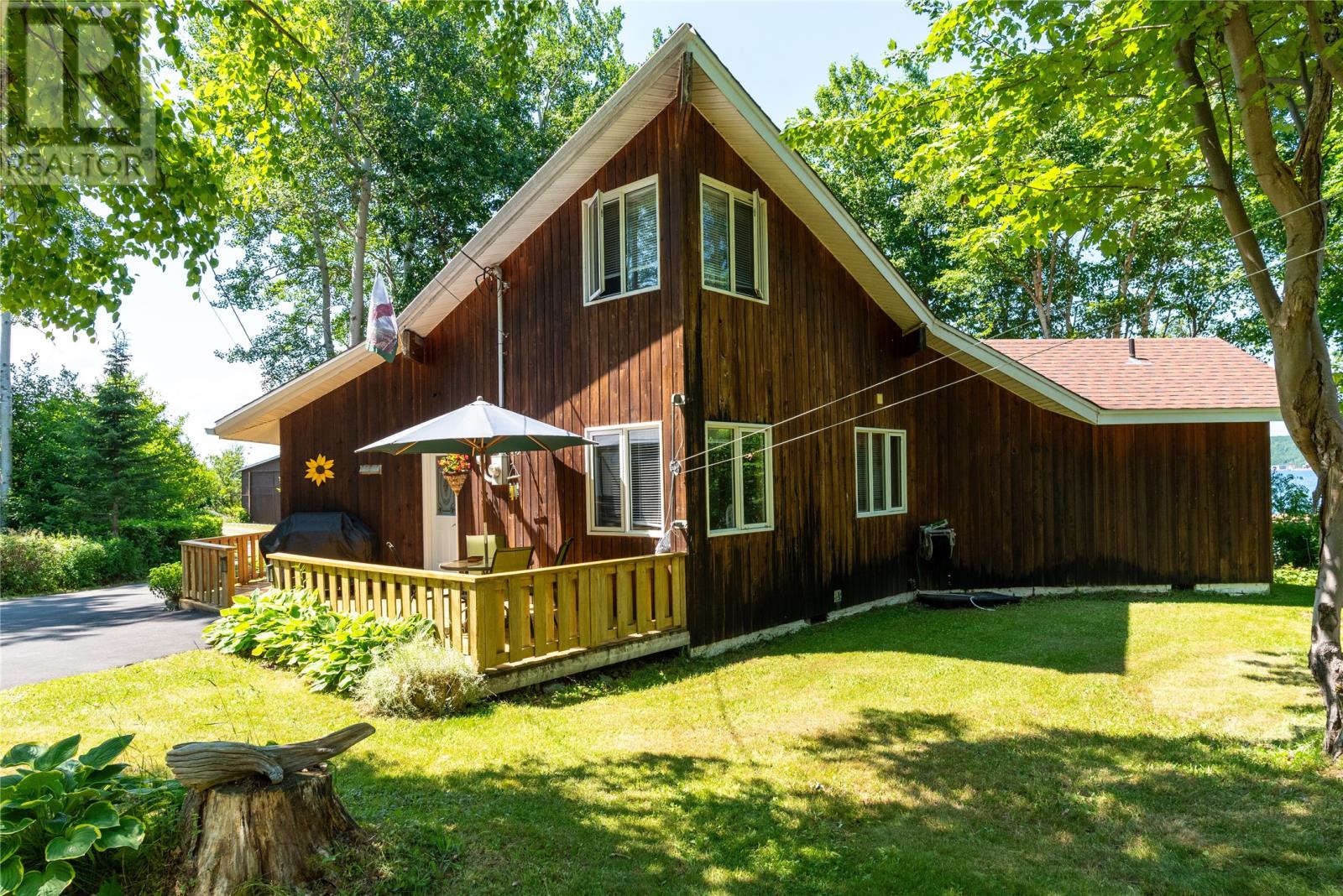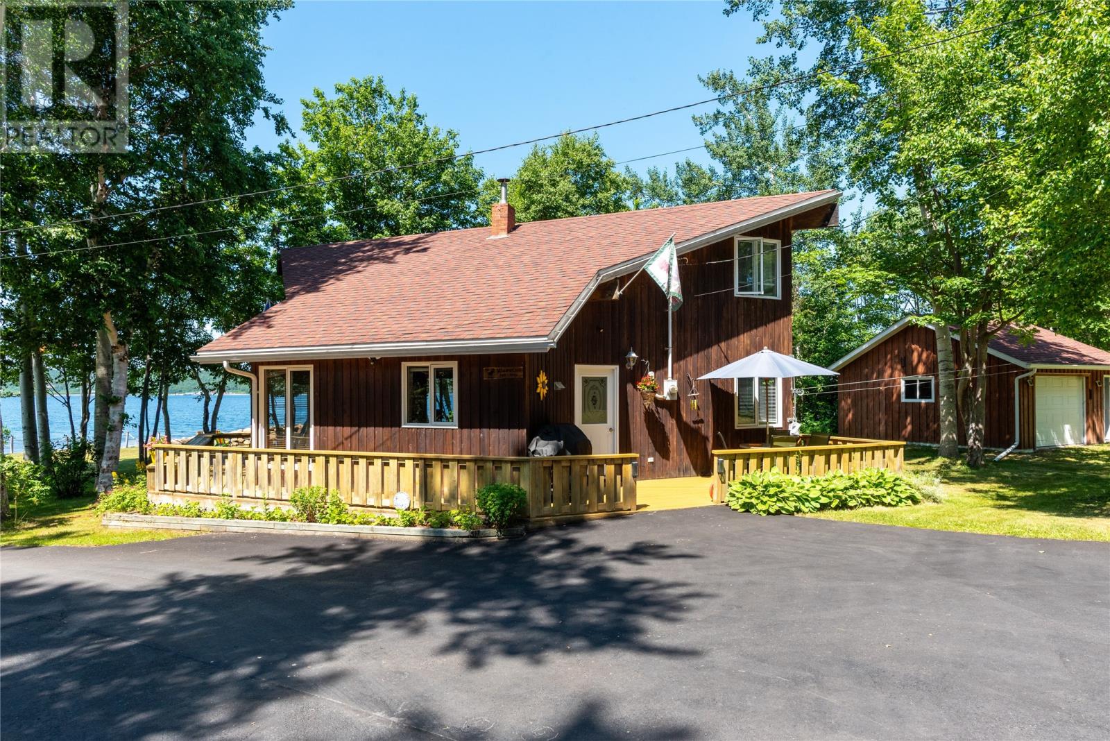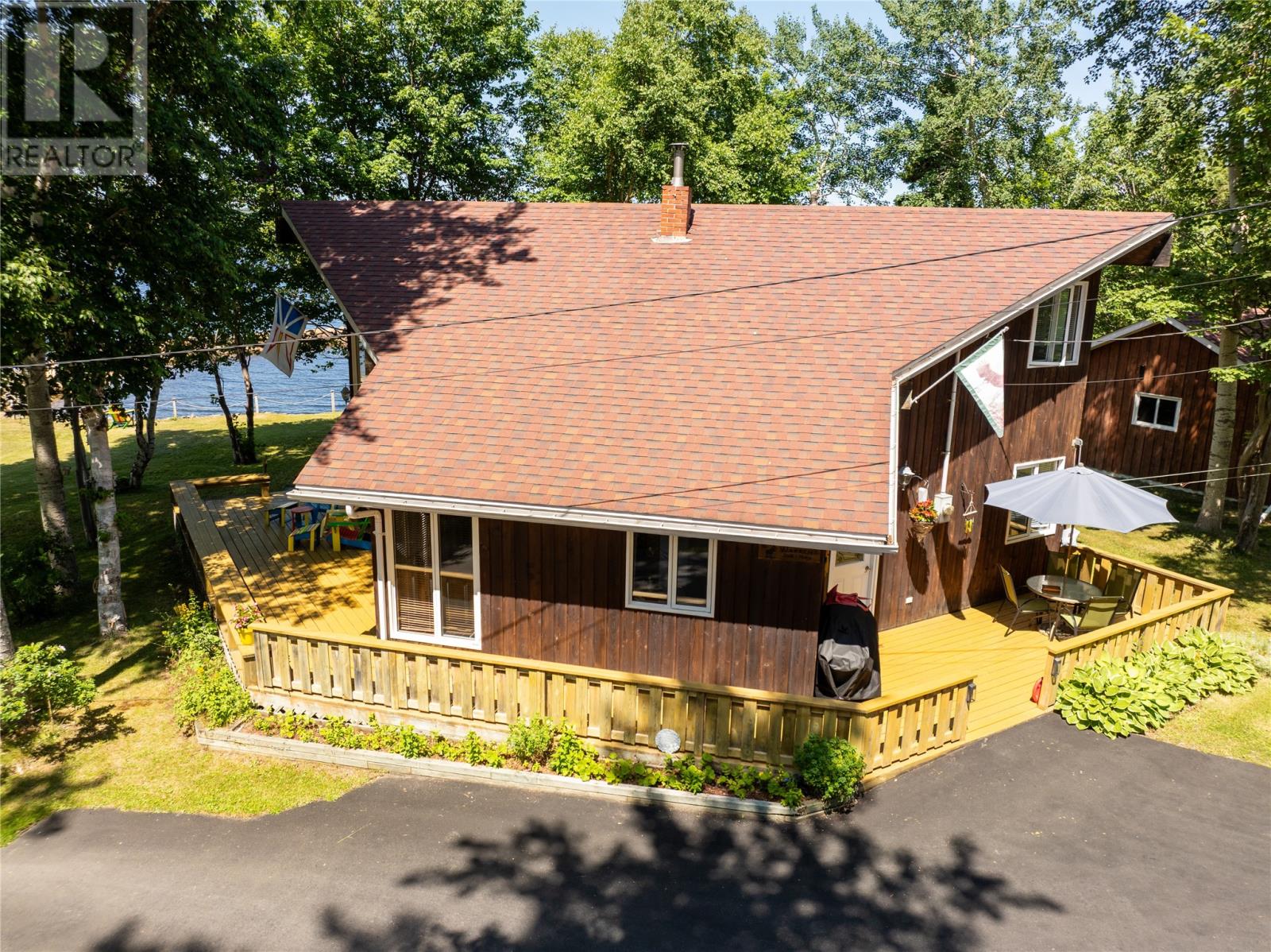 Welcome to this stunning waterfront retreat nestled on nearly 3 acres of land. This property offers the perfect blend of charm, modern comfort, and incredible outdoor living. Whether you’re seeking a full-time residence or a seasonal getaway, this home delivers privacy, space, and a true connection to nature. Tucked among mature trees, the home offers exceptional seclusion. A spacious wraparound deck showcases breathtaking views of the bay—perfect for morning coffee or unwinding in the evening. A gently sloping lawn leads to your own private shoreline, with a mix of sandy beach and rocky point—ideal for kayaking, swimming, boating, or relaxing by the firepit. Perfect for outdoor and boating enthusiasts, this property includes two detached garages, one of which houses a John Deere tractor to help launch the floating dock for large boats and yachts. The boathouse, measuring over 30 feet and located near the water’s edge, offers direct access to the bay. A breakwater protects your vessel from rough waves during high winds, ensuring safe storage and peace of mind. There’s also a greenhouse, providing space for gardening and self-sufficiency, and more than enough room on the land for future expansion or recreation. Inside, the home features vaulted ceilings, wood finishes, and expansive windows that flood the living space with natural light. The cozy living room includes an airtight wood stove set in a natural rock fireplace, creating a warm, rustic focal point. The main level offers a bright kitchen and dining area, guest bedroom, full bath, and a spacious primary suite with a 4-piece ensuite. Upstairs, a large open loft overlooks the living room and provides extra living space for guests, a home office, or a family room. Located just minutes from Glovertown and breathtaking trails of Terra Nova National Park, this is more than just a property—it’s a lifestyle. If you’re dreaming of peaceful waterfront living with space to roam, this is the perfect place to call home! (id:2887)