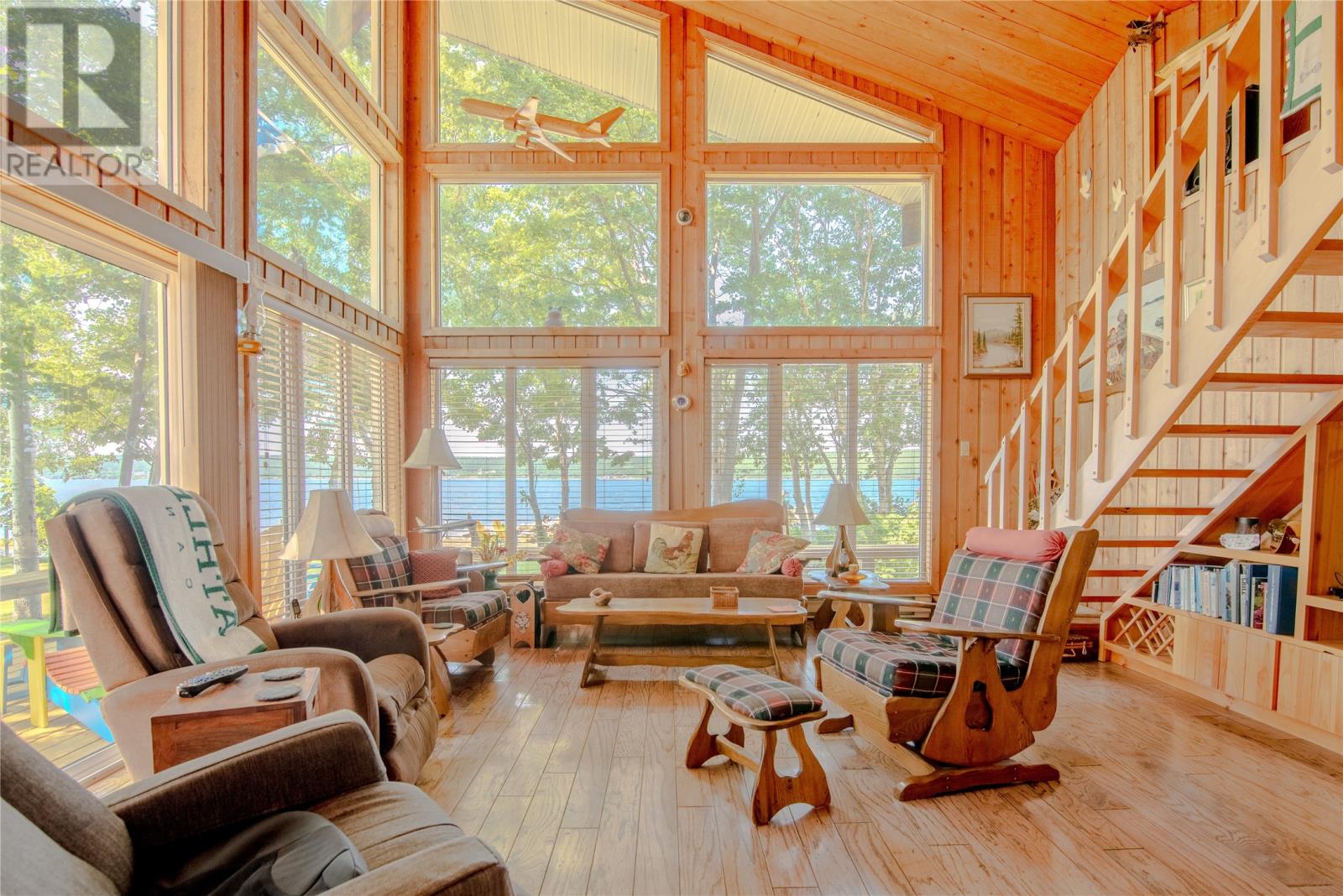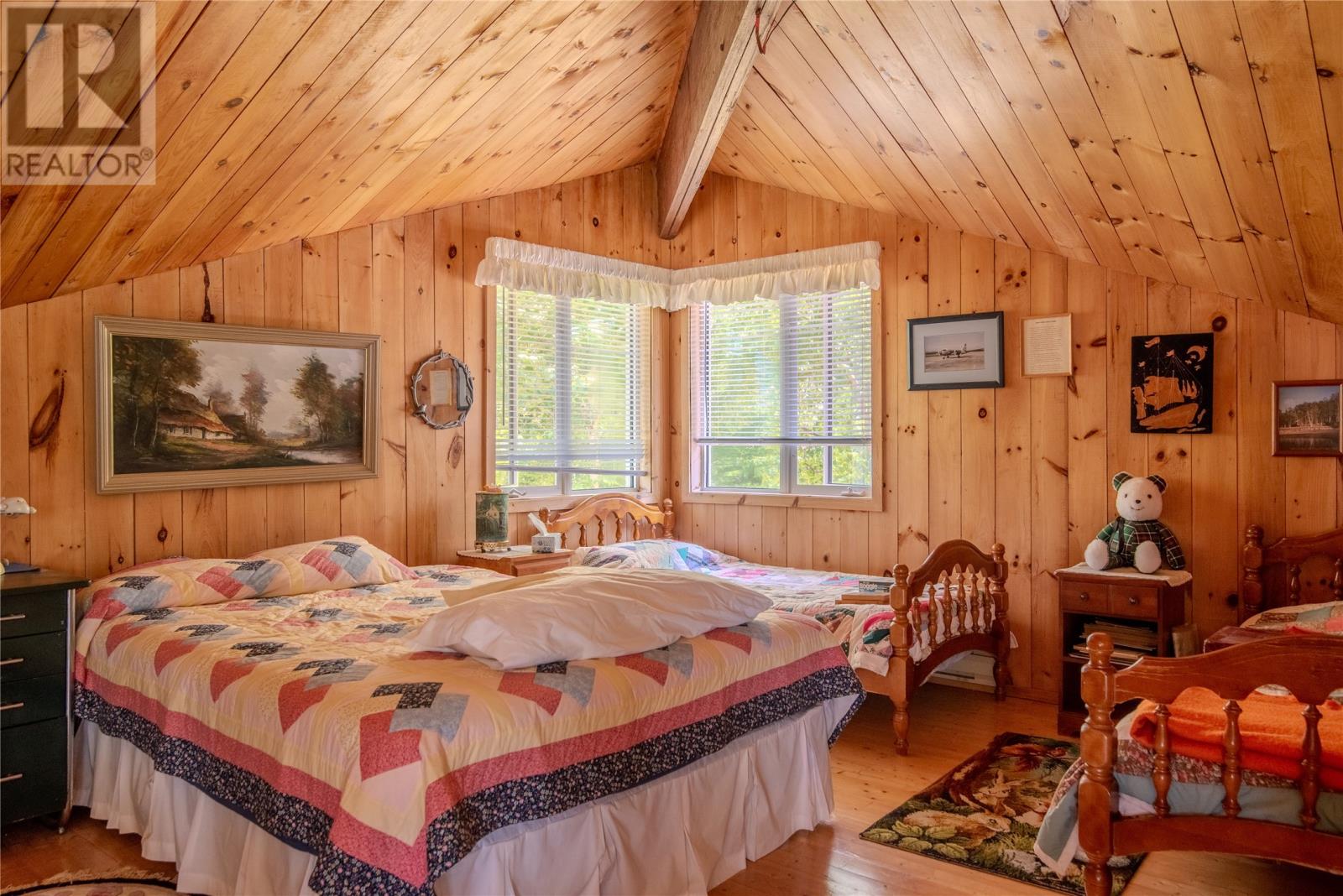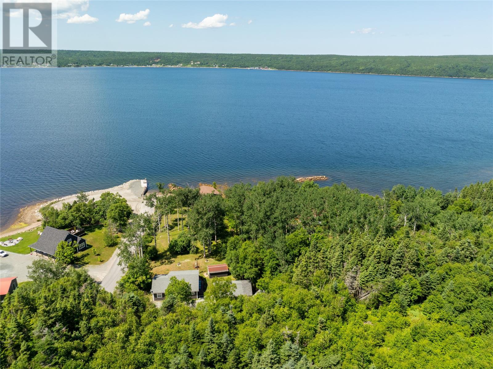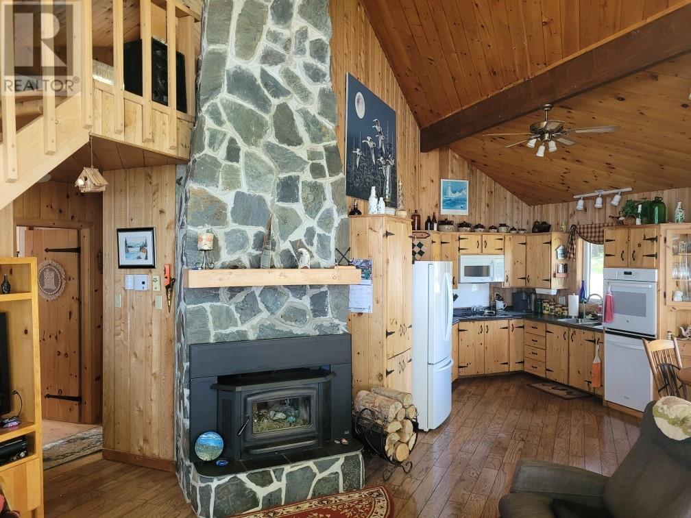 Welcome to this stunning waterfront retreat nestled on nearly 3 acres of land. This property offers the perfect blend of charm, modern comfort, and incredible outdoor living. Whether you’re seeking a full-time residence or a seasonal getaway, this home delivers privacy, space, and a true connection to nature. Tucked among mature trees, the home offers exceptional seclusion. A spacious wraparound deck showcases breathtaking views of the bay—perfect for morning coffee or unwinding in the evening. A gently sloping lawn leads to your own private shoreline, with a mix of sandy beach and rocky point—ideal for kayaking, swimming, boating, or relaxing by the firepit. Perfect for outdoor and boating enthusiasts, this property includes two detached garages, one of which houses a John Deere tractor to help launch the floating dock for large boats and yachts. The boathouse, measuring over 30 feet and located near the water’s edge, offers direct access to the bay. A breakwater protects your vessel from rough waves during high winds, ensuring safe storage and peace of mind. There’s also a greenhouse, providing space for gardening and self-sufficiency, and more than enough room on the land for future expansion or recreation. Inside, the home features vaulted ceilings, wood finishes, and expansive windows that flood the living space with natural light. The cozy living room includes an airtight wood stove set in a natural rock fireplace, creating a warm, rustic focal point. The main level offers a bright kitchen and dining area, guest bedroom, full bath, and a spacious primary suite with a 4-piece ensuite. Upstairs, a large open loft overlooks the living room and provides extra living space for guests, a home office, or a family room. Located just minutes from Glovertown and breathtaking trails of Terra Nova National Park, this is more than just a property—it’s a lifestyle. If you’re dreaming of peaceful waterfront living with space to roam, this is the perfect place to call home! (id:2887)