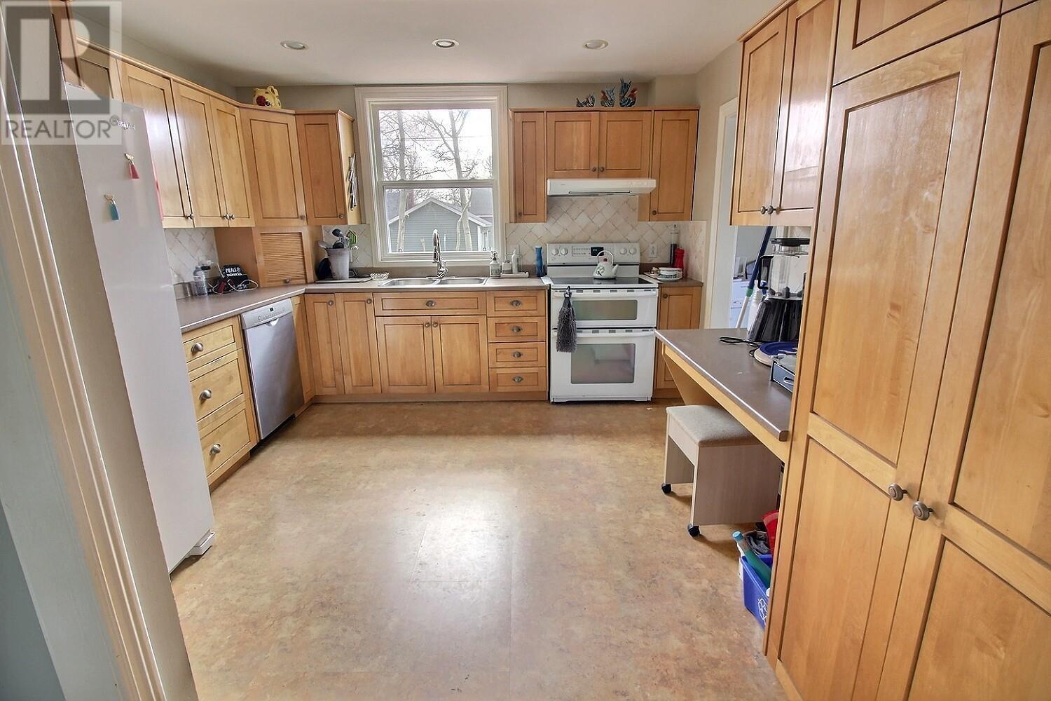Visit REALTOR® website for additional information. Charming and spacious family home blending character and comfort. The main level features original hardwood floors, a bright living room with propane fireplace, a large dining room, and a kitchen with ample storage overlooking the private backyard. You’ll also find a laundry area with half bath, backyard access, and entry to the attached garage. Upstairs offers a spacious primary bedroom with walk-in closet and ensuite featuring a jetted soaker tub and stand-up shower, plus four additional bedrooms and a full bathroom. Outside, enjoy a fully fenced yard with mature trees—including an apple tree—an expansive deck, and a barn-style garage. Extras include multi-zone electric radiant heating, a paved driveway, and a covered front porch for year-round enjoyment. (id:2887)