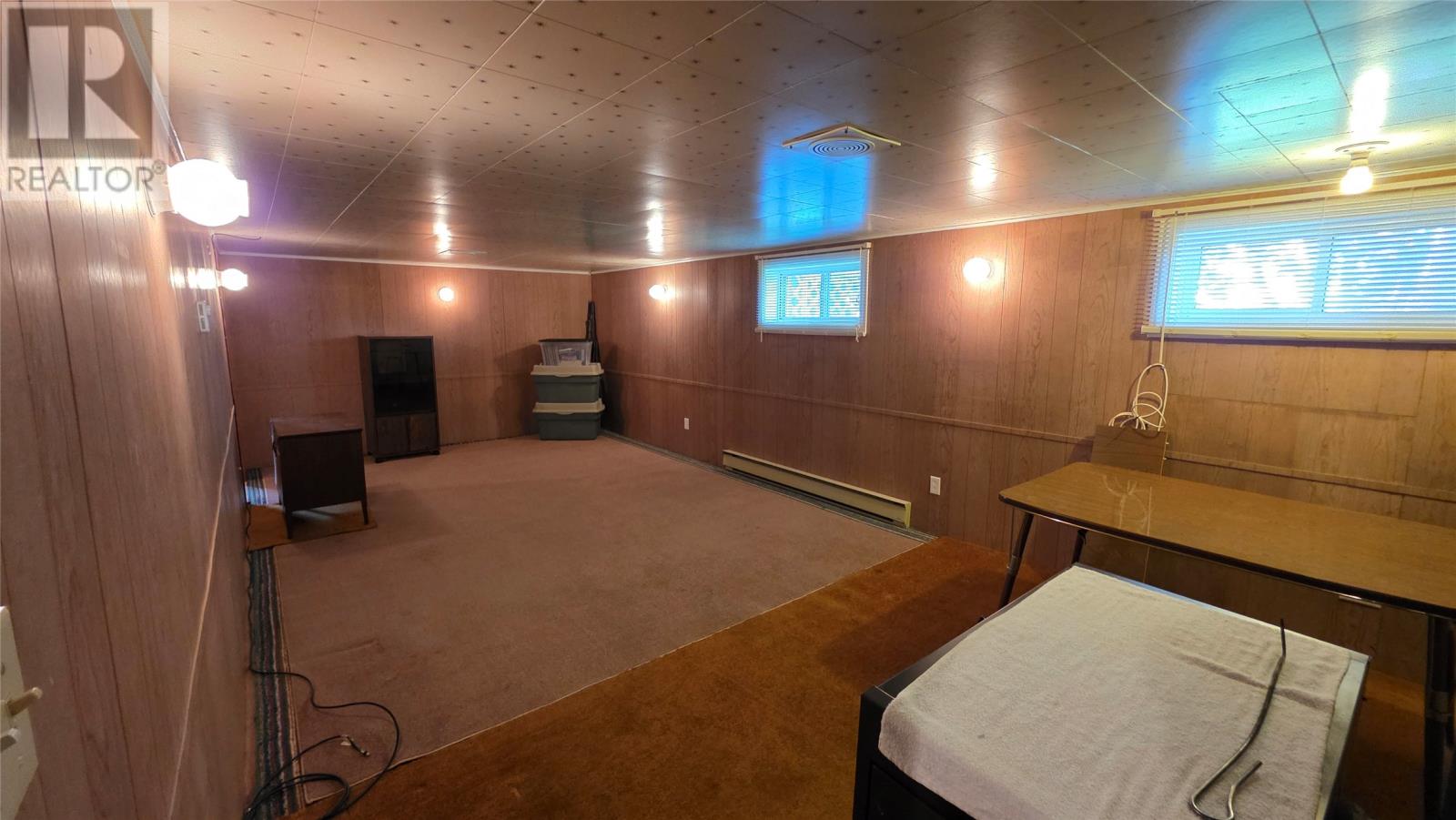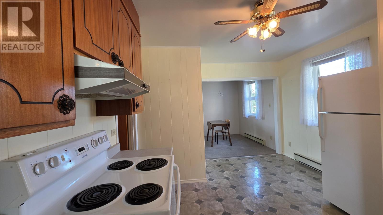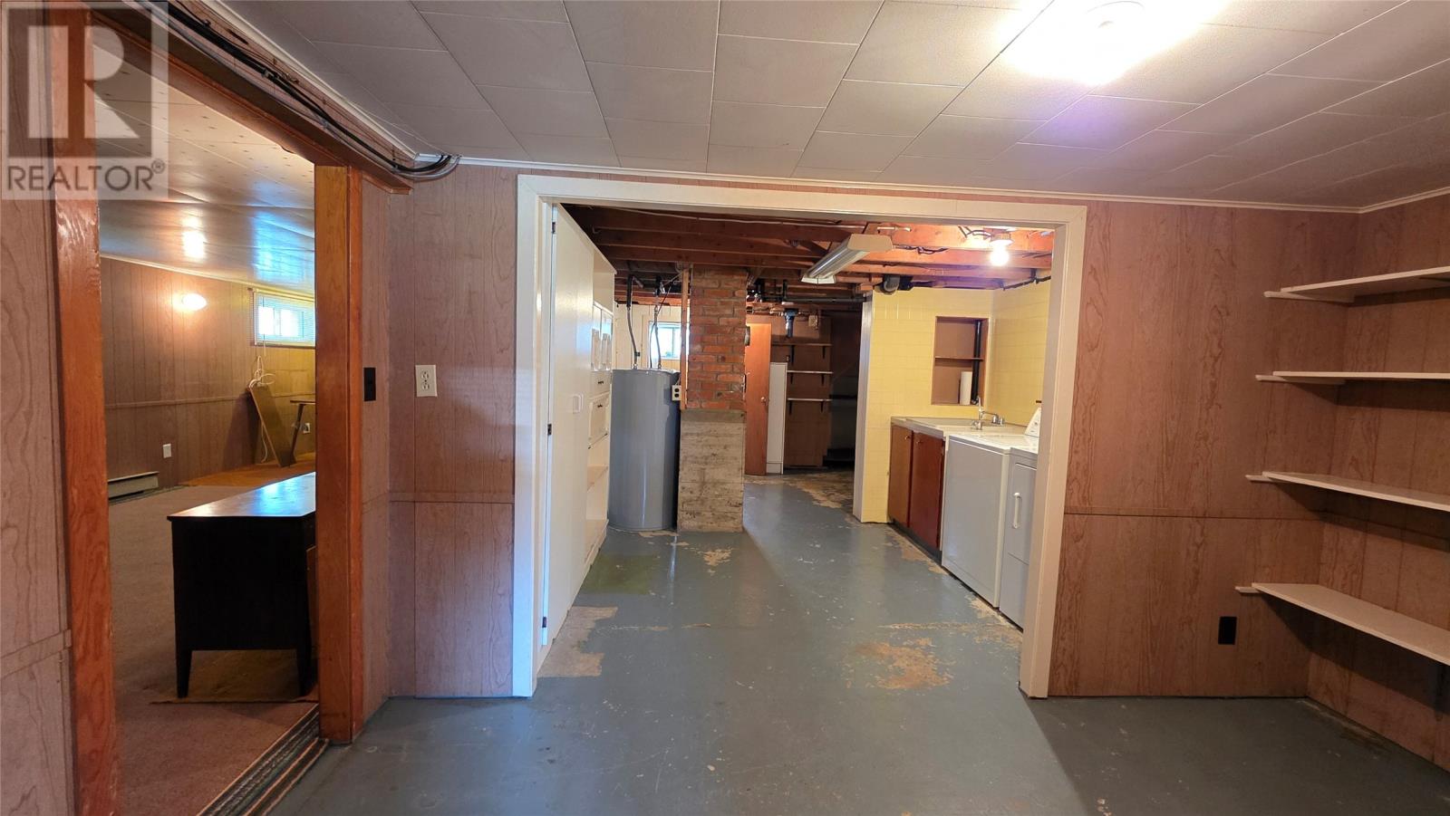 Set in the heart of Twillingate, nestled amongst trees on a quiet lot that runs more than 300′ feet, this 3 bedroom home is an ideal starter, retirement home or cottage. The property includes a large shed and a partially finished walkout basement, with plenty of storage, a rec room and workshop. The main floor has a large kitchen that opens to the dining and living room, ideal for family nights or entertaining friends. The living room windows fill the space with natural light and views of the harbour. Two of the three bedrooms also look out to the sea, while the third bedroom and bathroom complete the main floor. A must see, as this home was well maintained, and although dated, it is move in ready! (id:2887)