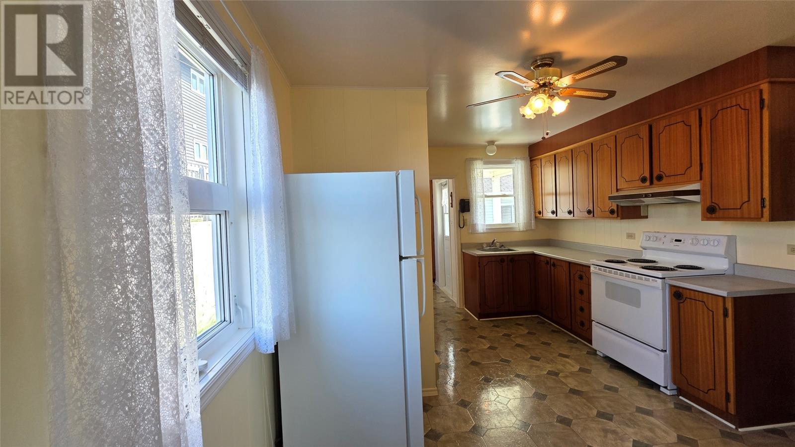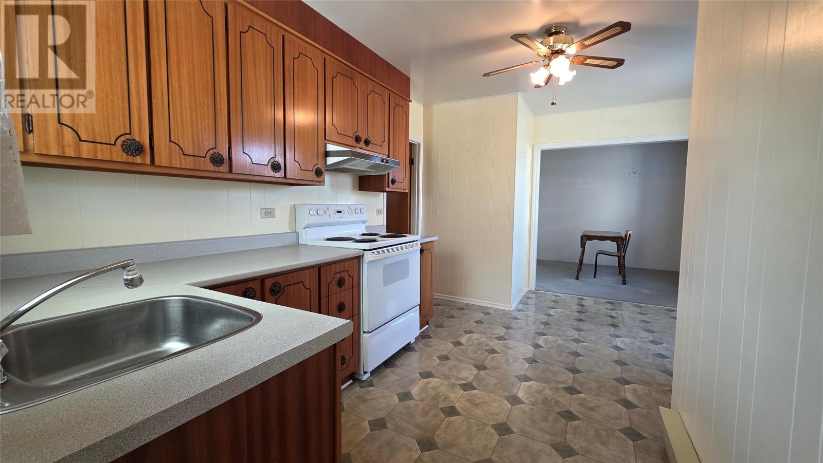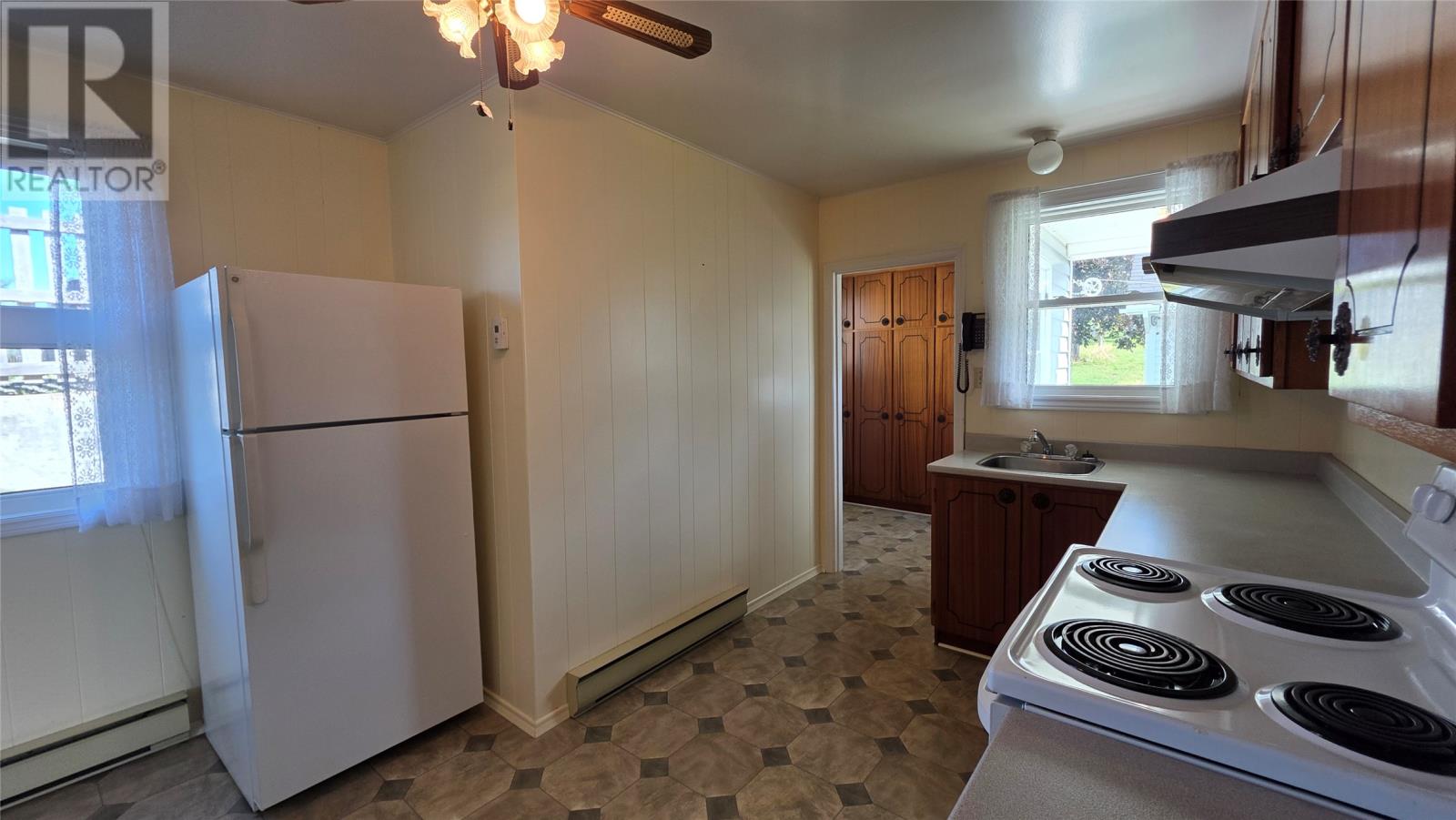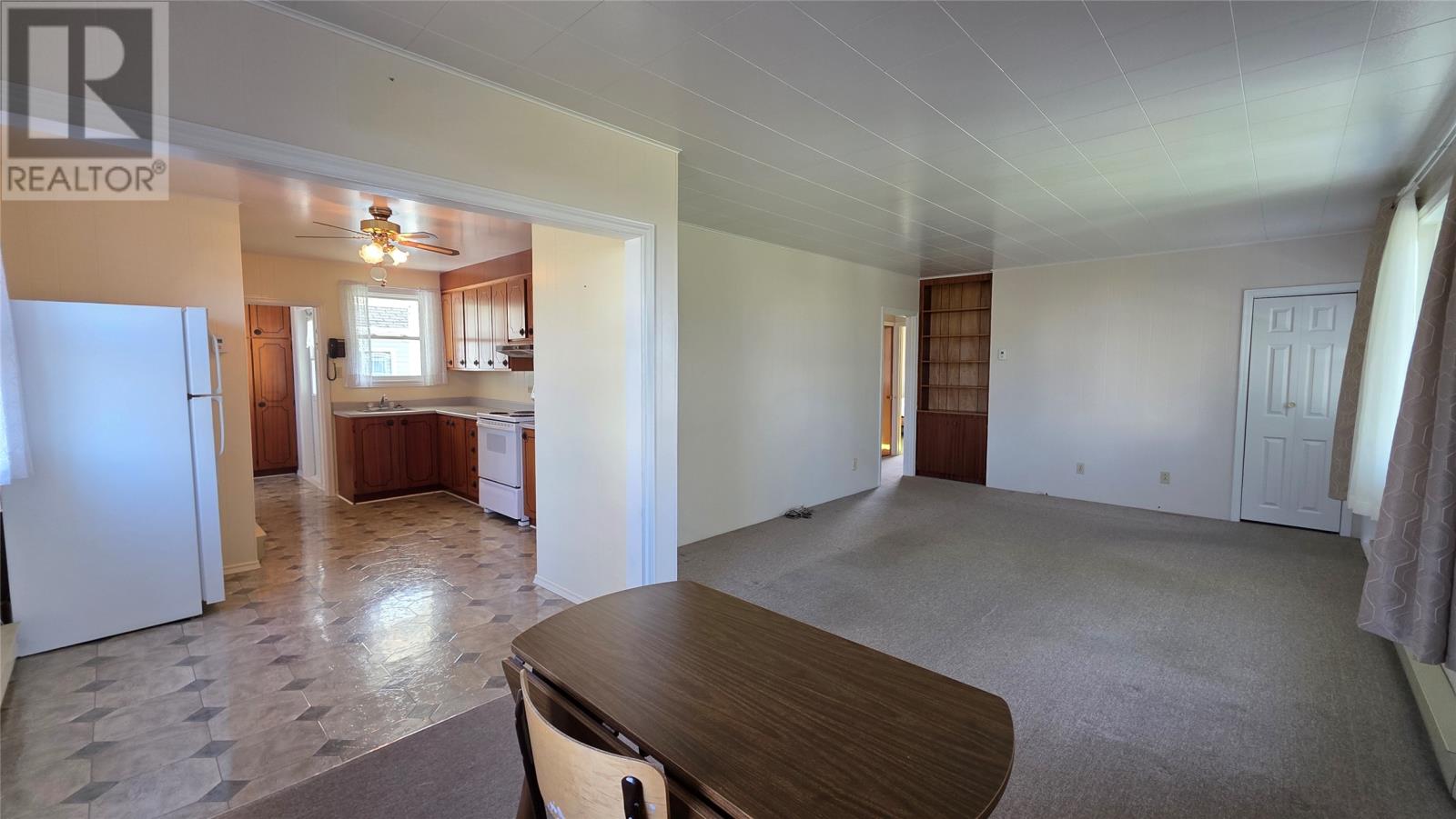 Set in the heart of Twillingate, nestled amongst trees on a quiet lot that runs more than 300′ feet, this 3 bedroom home is an ideal starter, retirement home or cottage. The property includes a large shed and a partially finished walkout basement, with plenty of storage, a rec room and workshop. The main floor has a large kitchen that opens to the dining and living room, ideal for family nights or entertaining friends. The living room windows fill the space with natural light and views of the harbour. Two of the three bedrooms also look out to the sea, while the third bedroom and bathroom complete the main floor. A must see, as this home was well maintained, and although dated, it is move in ready! (id:2887)