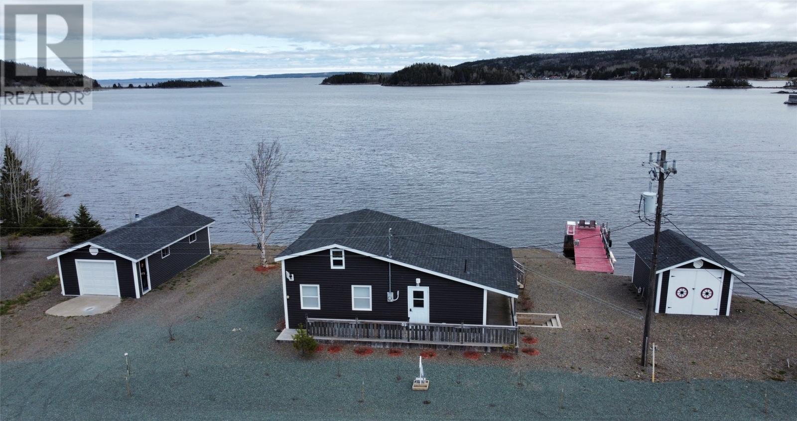 Are you ready to escape the hustle and bustle of the city? Nestled in the heart of cottage country in gorgeous Loon Bay, this property offers all the peace and tranquility one desires. Watch the sunsets and sunrises. Listen to the waves roll on shore at night as you breath in that fresh salty air. With a wraparound deck you can enjoy the views from all angles. Step a little closer on your private dock and you just might see otters, seals, salmon jumping, ducks, eagles and so much more….or maybe jump in your boat and head to the nearby cod fishing grounds and explore Notre Dame Bay with all its coves, icebergs and rugged coastlines. Spend your days fishing, kayaking, canoeing, boating, swimming, snowmobiling or hunting, the options are endless. Loon Bay offers the best of both worlds; you have the salt water right in your backyard and a large pond with vast forest just across the street, ideal for all outdoor enthusiasts. Let’s step inside. This is a cozy 2-bedroom cottage with a rustic charm and modern amenities that’s perfect for weekend getaways or year-round living. This cottage features a spacious living area, eat in kitchen and breakfast bar, large windows for natural light and a sliding patio door leading to the deck so you can soak it all in. There is a full 3-piece bath and 2 large bedrooms plus lots of closet space. The garage measures 30×16 and its fully wired and insulated, with a garage door opener and concrete floor. There’s also a 12×16 storage shed. Utilize this property as an AIRBNB when you’re not using it and generate extra income. Powered with 125 AMP Service. Recent upgrades: Pex plumbing, all new digital heaters, pot lights, new receptacles, new shingles in very recent years and solid ice block concrete foundation. Don’t miss this opportunity to purchase your very own piece of paradise. The views are nothing short of spectacular. Whether you’re looking for a weekend retreat or a year-round home, this cottage offers the best of both worlds. (id:2887)