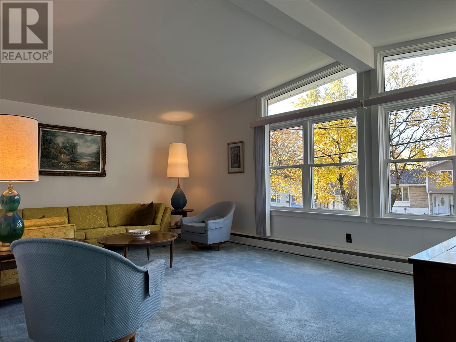 Detached family home with a large lot being sold by the original owner. First time on the market in a quiet, established neighborhood on MacDonald Drive. Near the entrance to the wooded trail leading to the hospital and nearby Gander Golf Club. Bright home with numerous large windows facing south, west and east. Split level entry (6 steps down, 8 steps up) with approximately 2000 sq ft of finished living space. Unique layout with vaulted ceilings on the upper level including 3 bedrooms, full washroom and large living room. Lower level with family room, open concept kitchen and dining area, 4th bedroom/office, washroom with walk-in shower, laundry/utility room, large storage closet plus storage under the stairs. Generous sized closets in the bedrooms. Back walk-out up from lower level family room to yard. Recent survey dated October, 2025 available. Mature apple tree admired by many. Garden shed. Add your personal touches and vision to make this home truly yours or just move in. (id:2887)