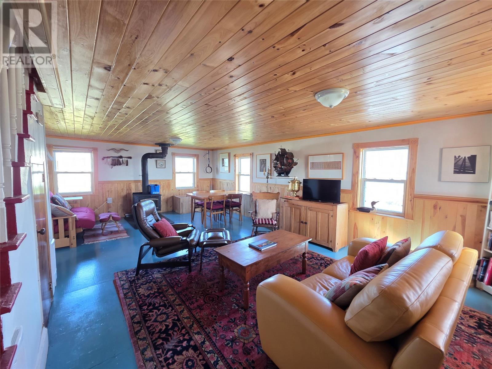 Escape to the coast with this stunning oceanfront property on Change Islands. Located at 7A Turnpath Road, this spacious 4-bedroom home is the perfect year-round residence, vacation home, or rental retreat. Set along the water’s edge, sheltered by a small island with access to beaches, the property features a massive deck—ideal for summer entertaining or simply enjoying the salty breeze. Watch fishing boats, drifting icebergs, and whales from your own backyard. Inside, the main floor offers a large kitchen and an open-concept dining/living area centered around a cozy wood stove—perfect for chilly evenings. You’ll also find a laundry room and a full bath with stand-up shower. Upstairs, the primary bedroom boasts an ensuite, while an additional office/bedroom and two more ocean-view rooms complete the upper level. Whether you’re craving quiet, nature, or a slower pace of life—this is outport living at its finest. (id:2887)