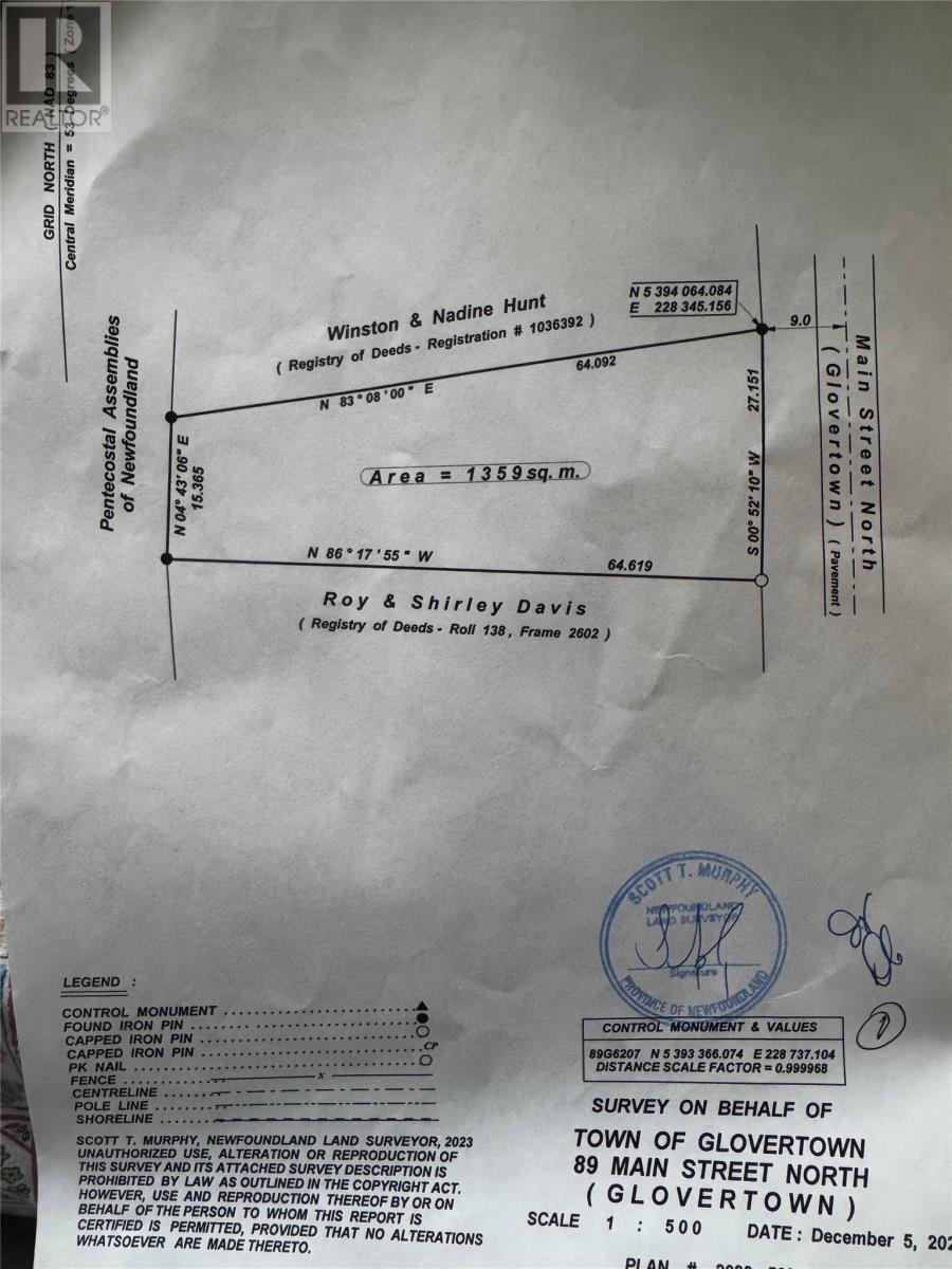 89 Main Street North, Glovertown Discover the perfect opportunity to build your dream home or investment property in the heart of Glovertown. This spacious 89’ x 208’ fully serviced lot offers municipal water and sewer and features a beautiful view of the bay, making it an ideal setting for your future plans. The property currently has a vacant dwelling that will need to be removed, giving you a clean slate to create exactly what you envision. Situated in a community known for its exceptional amenities, Glovertown is a hub for outdoor recreation—enjoy boating on the bay, explore miles of hiking trails, take advantage of nearby ATVing, relax on the Eastport beaches, or venture just minutes away to Terra Nova National Park and local golfing. Conveniently located only 35 minutes to Gander, this property combines tranquility with accessibility. Don’t miss this incredible opportunity in one of Newfoundland’s most scenic and adventure-filled towns! (id:2887)